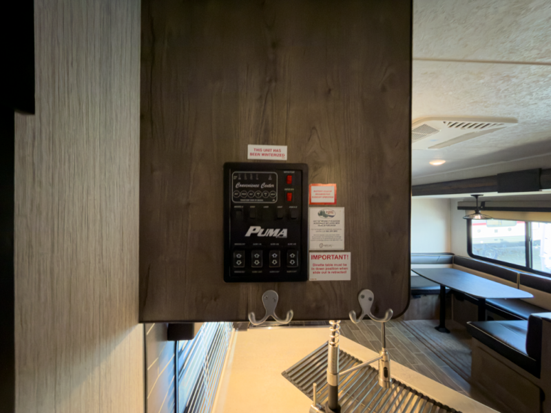 You know it's a great day when it starts with a Palomino Puma travel trailer, fifth wheel, or toy hauler because nothing else is better suited for adventure! There is a Puma for every lifestyle, and there are plenty of features that will enhance each of those lifestyles too. The Puma's construction is better built for lasting performance. The Puma has an AlphaPly roofing membrane, a King HD TV antenna, a smooth, aerodynamic radius front metal with bold exterior graphics, residential-grade carpet with pad on slide outs, and a 5/8" Araucoply plywood floor decking. The Puma also comes packed with value since it gives you the features you need while traveling, like an electric awning with LED lights, preparations for WiFi, a Bluetooth stereo, an enclosed underbelly, an outside shower, and exterior speakers. Plus, the roller shades will help you keep the interior dark and private when you need it to be.