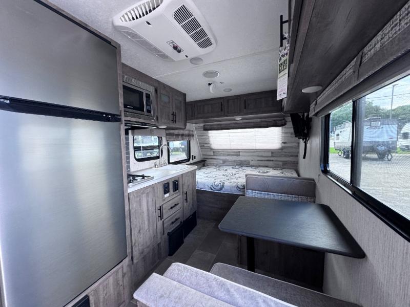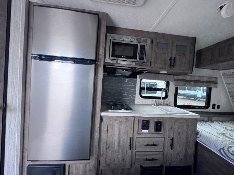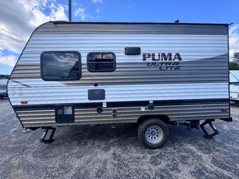 Do you like to get away at a moment's notice? This Puma Ultra Lite travel trailer will give you the ability to do so! Once you pack up your essentials into the overhead cabinets and place your perishables in the 12V residential refrigerator, you'll be ready to hit the road. While you're out and away from home, you won't have to worry about where you will find dinner because the two-burner cooktop will allow you to make healthy meals wherever you are, and the 38" tub in the private bathroom will give you a chance to stay clean while you're away too. You can even bring along a friend or two since there is an RV queen bed and a booth dinette for sleeping.