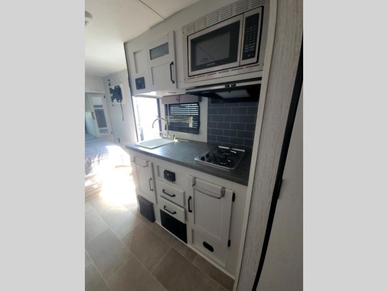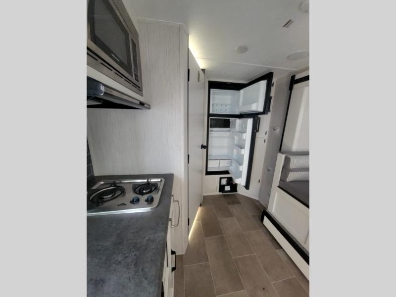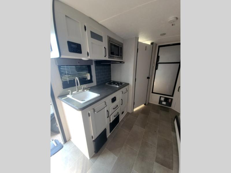 The Palomino Puma Ultra Lite travel trailers and toy haulers are just what you are looking for! These units provide you with great fun without causing strain as you travel. The effortless towing is what will draw you in because it will allow you to use your crossover vehicle or smaller SUV. The exterior has an Alpha Superflex roof for many years of durability, a Darco wrapped underbelly for protection during travels, rain gutters with large down spouts for preventing water build-up, and radius baggage doors for your gear. The kitchen has a decorative backsplash and spice rack for a taste of home, and the USB charging ports will make it easy to power your phones. An exterior electric awning will protect you from rain or too much sun exposure, and the Puma Ultra Lite has also been prepped for Wi-Fi, solar power, and a back-up camera.