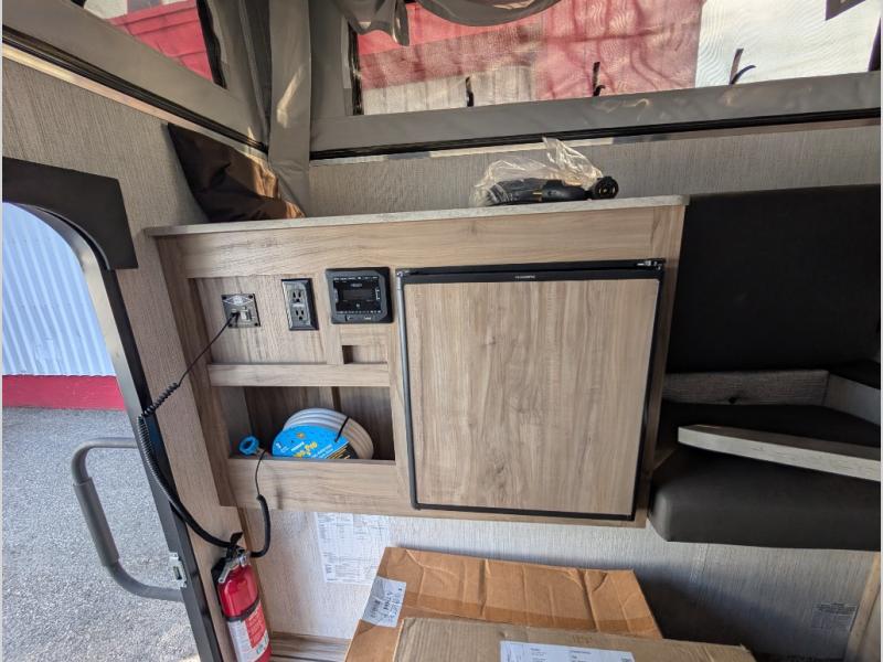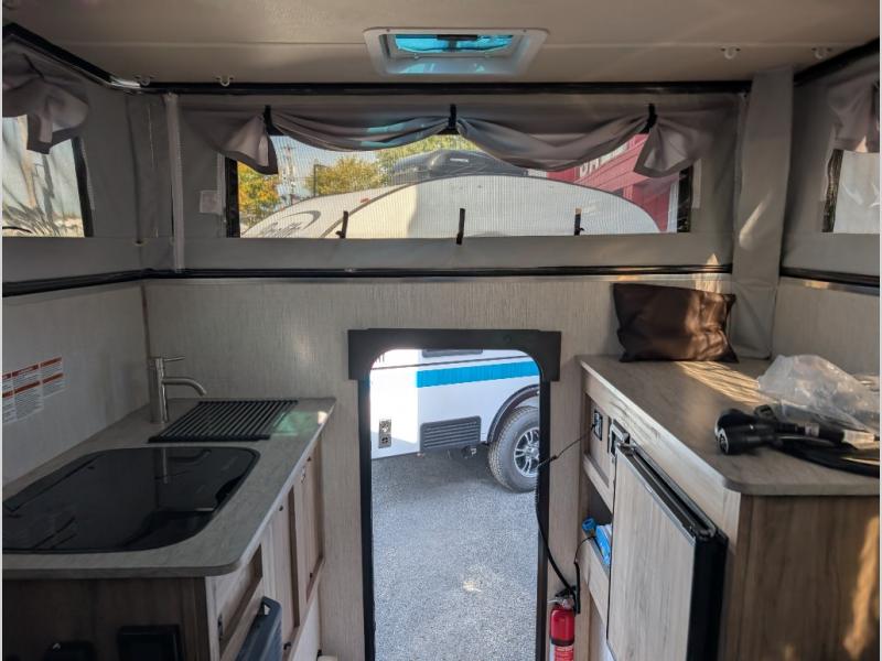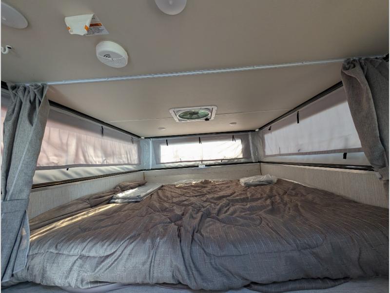 If you have a compact truck then you need this soft sided truck camper! The front 60" x 80" bed is ready for you to enjoy a good night's rest each night. Grab some eggs from the three way refrigerator and fry them up on the two burner cooktop then head to the U-shaped dinette to enjoy them there before starting your day. There is also a storage area to keep any snacks or canned goods. Walk-through the 55" one-piece door to a great adventure outdoors!