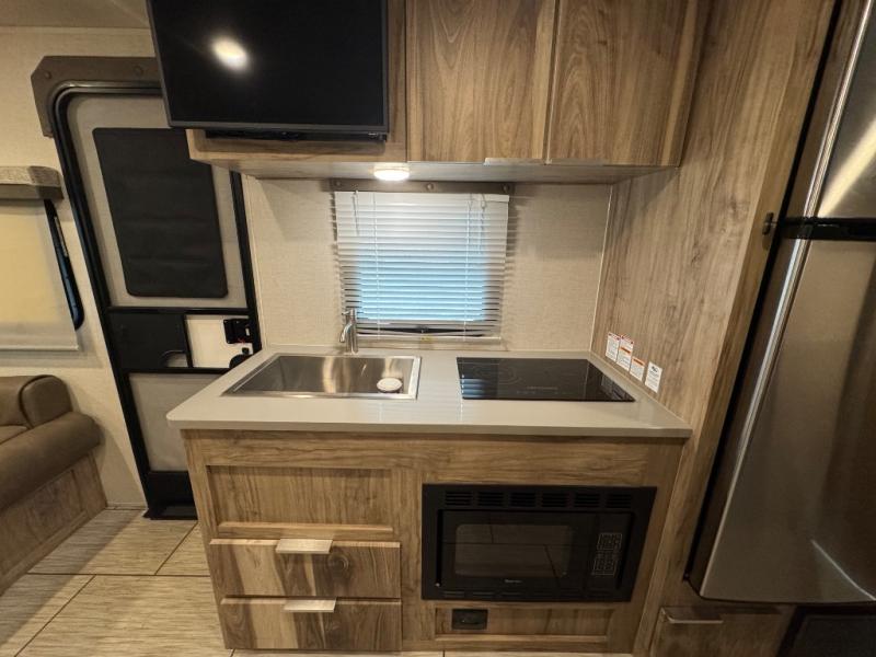 You don't need to revolve your campsite choice around your electrical needs with any one of these Palomino Revolve travel trailers! They are completely solar powered and can charge not only by solar, but also by shore power and tow vehicle, making them a 100% zero emissions RV. There is also an interior monitor panel to provide real time battery bank usage so you won't have to worry about running out of power. The construction promotes better fuel efficiency, and includes Azdel construction, vacuum bonded construction, a gel coat exterior fiberglass for easy cleaning and maintenance, and a fully walkable roof. Make your selection today!