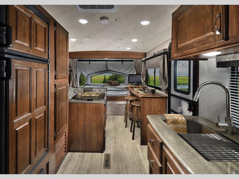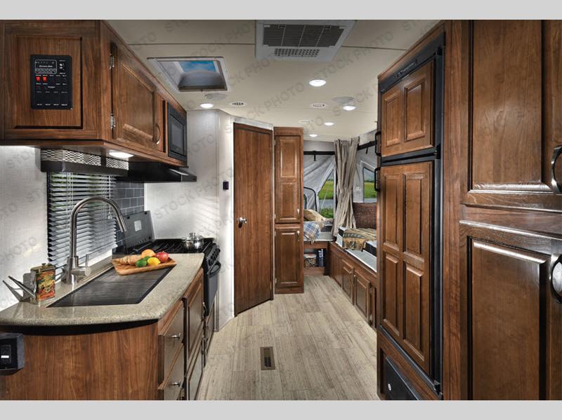 Palomino has equipped the SolAire Expandable with several indulgent amenities. The skylight in the kitchen will keep the trailer feeling open and bright as you go about your day, and if that doesn't bring in enough sunshine, you can simply switch on the LED lights throughout the trailer for an extra boost of light. The USB charging station makes it possible for you to keep your modern electronics full of battery life, even in the great outdoors. These models feature a power tongue jack which allows you to set up camp easily and quickly so that you can enjoy the great outdoors with your family.