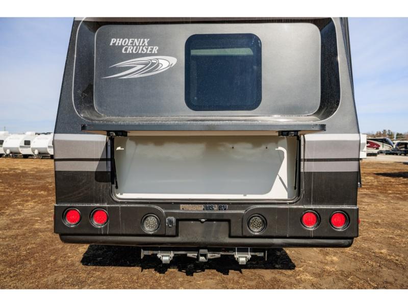Cruise around town or around the state with a trustworthy Phoenix USA Phoenix Cruiser Class B+ gas motorhome! The exterior has slam-latch baggage doors, frameless automotive-style windows, a premium graphics package, and a hide-away retractable screen door. Some of the great electrical features found on the Phoenix Cruiser are the 2,000W inverter, the 110V outside receptacles with GFI, the 30 AMP power cord, the systems monitor panel, and the preparations for a generator. An outside shower will allow you to fill the dog's water bowl or hose down your outdoor equipment before storing it away, and a pleated windshield privacy wrap in the cab area will protect you from prying eyes.