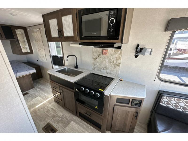 When it's time for your next getaway, then hook up quickly in this Avenger travel trailer by Prime Time RV and start making memories. You will find full kitchen amenities for the cook to prepare and serve meals to everyone, and there is a full bathroom that includes a shower with a curved shower curtain for more elbow room. You are sure to appreciate the sleeping space for four people with the U-shaped dinette in the rear and the queen-size bed in the front.