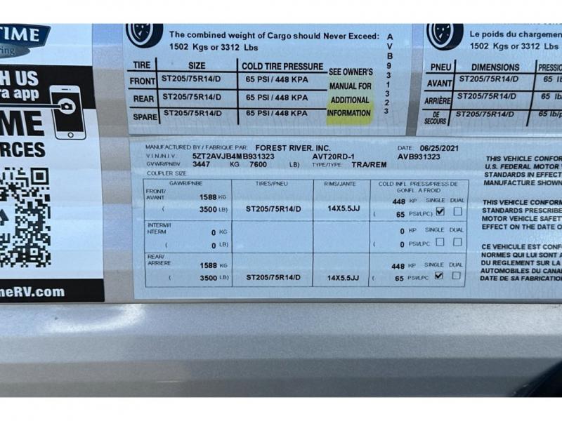 Used 2021 Prime Time RV Avenger 20RD Travel Trailer