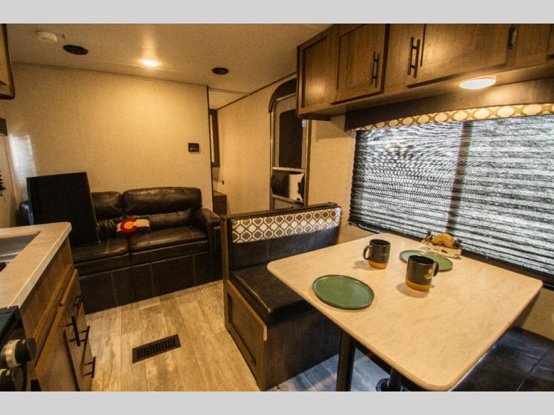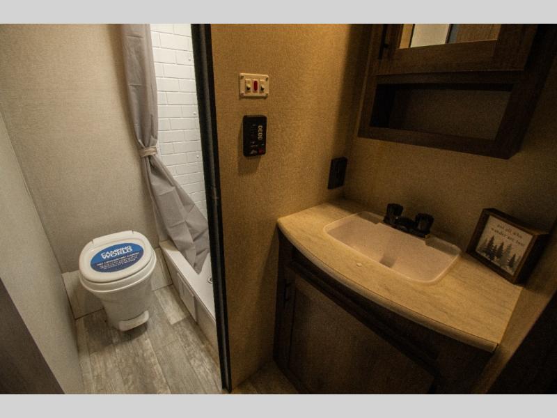 With premium fabrics and beautiful interior décor, the Prime Time Avenger travel trailers offer complete customer satisfaction! The innovative and lasting construction of the Avenger provides you with confidence as you travel. The Avenger is built with a powder-coated I-beam frame, an aluminum exterior skin, a PEX plumbing system, a Dynaspan 5/8" seamless floor decking, a secure tank system, and an extreme weather package. The interior has excellent features to accommodate all sorts of traveling types with its massive under-bed storage, Bluetooth entertainment system, in-floor ducted heat, large fully vented windows, and USB ports. You will also enjoy having an exterior hot/cold shower and a doggy D-ring so that you can rinse off your puppy's paws before taking them back inside for the night.