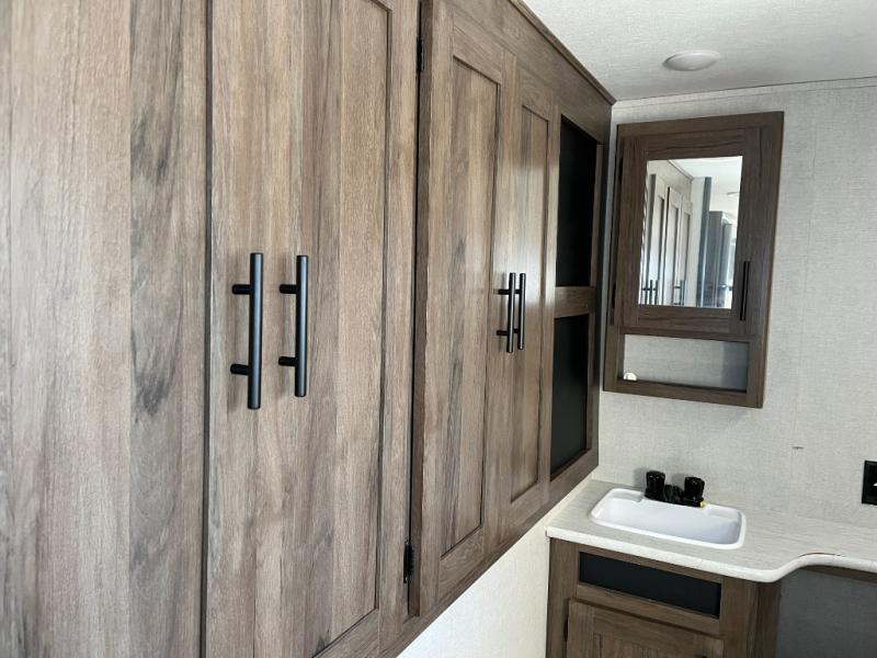 With premium fabrics and beautiful interior décor, the Prime Time Avenger travel trailers offer complete customer satisfaction! The innovative and lasting construction of the Avenger provides you with confidence as you travel. The Avenger is built with a powder-coated I-beam frame, an aluminum exterior skin, a PEX plumbing system, a Dynaspan 5/8" seamless floor decking, a secure tank system, and an extreme weather package. The interior has excellent features to accommodate all sorts of traveling types with its massive under-bed storage, Bluetooth entertainment system, in-floor ducted heat, large fully vented windows, and USB ports. You will also enjoy having an exterior hot/cold shower and a doggy D-ring so that you can rinse off your puppy's paws before taking them back inside for the night.