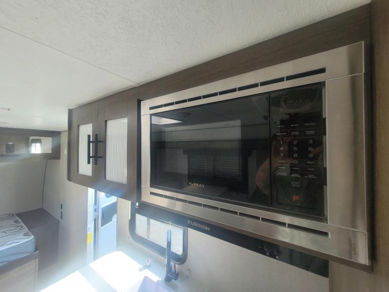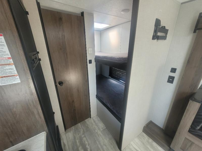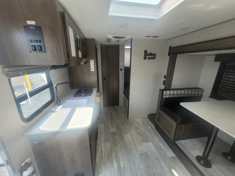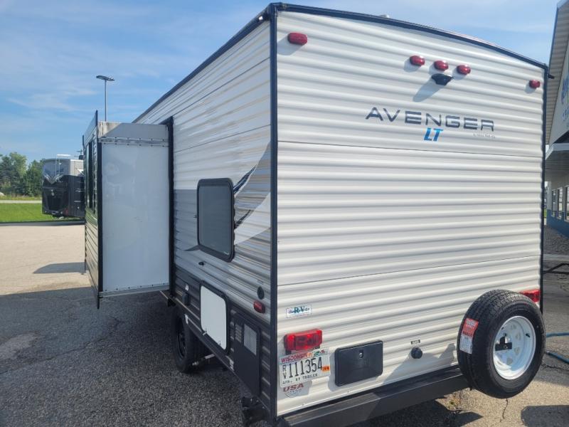Grab your family and camping gear and get ready for fun! This Avenger LT travel trailer is perfect for your family of four or five. The kids will love the bunk beds, and you'll appreciate the front bed with a nightstand for your valuables. This model includes a dinette slide, so you'll have plenty of room for the kids to play games or just unwind from a day of hiking or biking. You'll be delighted with the kitchen skylight that gives natural light as you cook a meal for your family. The LED-lit power awning and outdoor speakers allow you to enjoy those evenings with loved ones as you dream around the campfire. Relax in style and comfort with this travel trailer.