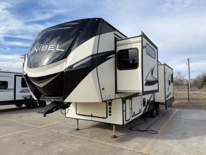 With any Sanibel fifth wheel by Prime Time RV, you will enjoy many intelligent features for luxurious camping or full-time RV living! The Extreme Thermal package allows you to extend your camping season by including heated, enclosed water lines, an enclosed underbelly, a heated pass-through storage, and a heated universal docking center. You can keep the party going with the exterior speakers, the coax TV connection and a 110V outlet, plus USB ports in the basement storage. Each model includes a smart arm electric awning with LED lights, DOT approved deep tint safety glass, and a "E-Z FLEX" rubberized suspension to provide smooth towing on tougher roads. Inside, you will enjoy shaker style interior doors, a Furrion residential cooktop and oven, roller shades throughout, and "Atrium" dinette windows to let sunlight in for an inviting space. Make the smart choice for your next RV. Choose one of these Sanibel fifth wheels today!