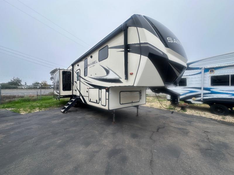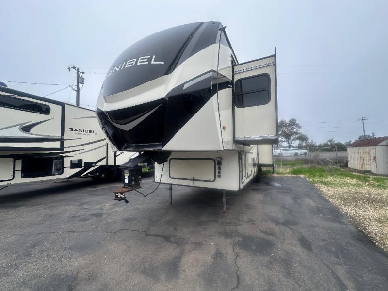 **IN STOCK**USED 2021 Prime Time Sanibel fifth wheel 3402WB ** IN ACAMPO **