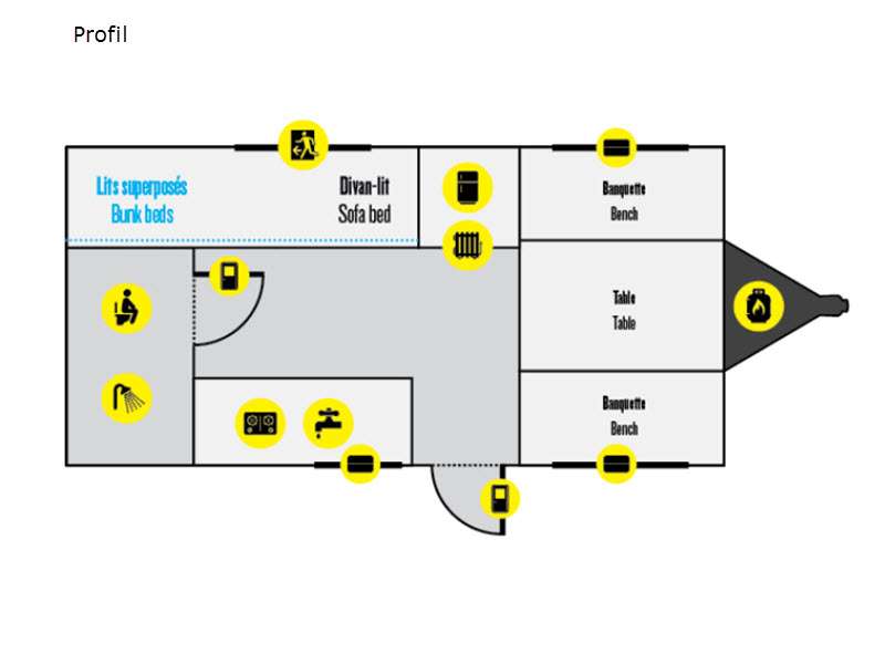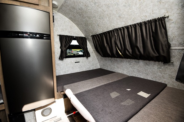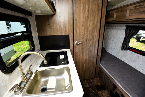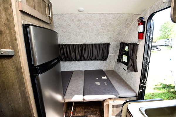 Your family and friends will be cozy during the cooler months thanks to the 16,000 BTU heater, and the fan will keep the trailer cool when needed. You might like to add the air conditioner option if you plan to travel during the hotter times of the year. The water heater will allow you to take a warm shower, and the front window offers great views and privacy when you close the curtain. The adults can sleep on the banquette once converted to a 76" x 54" bed, and the kids will claim the bunk beds. Your everyday SUV or van with 2,000 lbs. of towing capacity will take you where you want to be in comfort as well. You might like to add an option or two like an exterior shower to rinse off any dirt before entering, and/or a radio for some entertainment.