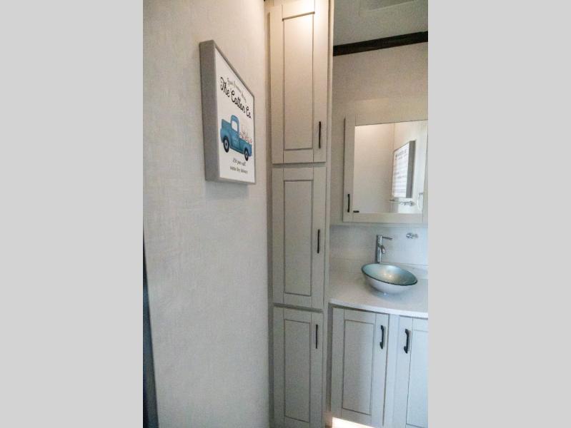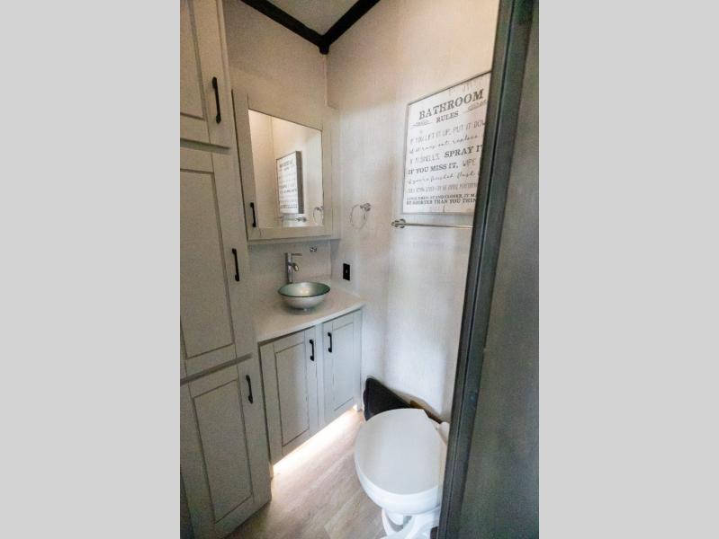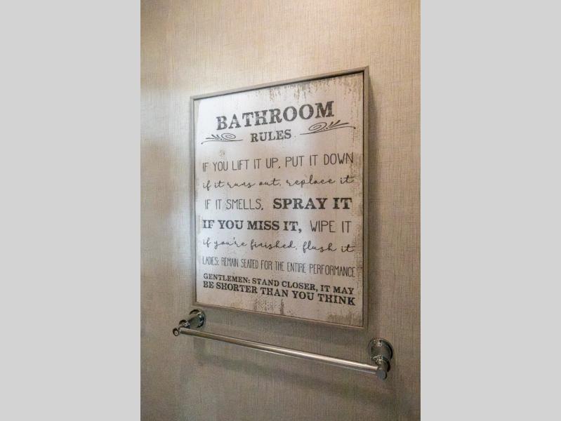 You are going to wish you found the Redwood fifth wheels sooner! With all of the residential comfort and modern luxury, you will be impressed. The Williamsburg Furniture Collection includes two premium dinette chairs, a buffet-style adjustable dinette with leaf extension, a residential-style sofa, and powered theater seating. The luxury further extends to the bedroom where you will find a gel-foam king bed with tilt and C-PAP shelves on both sides of the bed. The straight roof line gives a luxury profile, and there are preparations for a wireless backup camera as well as solar power. The seamless residential insulated heat ducts will efficiently heat your unit, and there is an exterior radio in the fully finished and heated pass-through with slat board storage.
