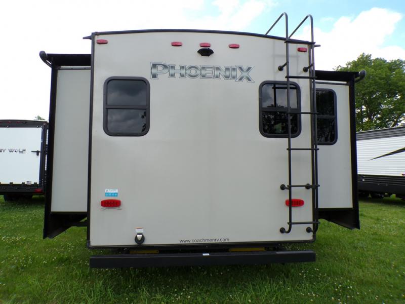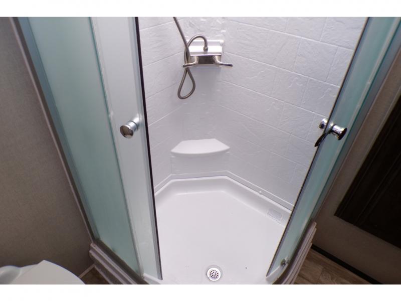 With any Phoenix Lite fifth wheel by Shasta RVs you will appreciate Turn Point engineering that will allow you to turn up to 90 degrees for hassle-free towing and parking. The vacuum bonded and aluminum framed sidewalls with Azdel is lighter than wood, rot-resistant, and provides better insulation. Inside, you will enjoy many comforts such as, Congoleum Carefree flooring, decorative modern window box valences, and a Black Label pillowtop mattress. Head outside to relax under the electric awning with LED lights, or enjoy the marine-grade speakers with LED lighting. There is even an outside shower with hot and cold water to fill the dogs water bowl or wash off your hiking boots!