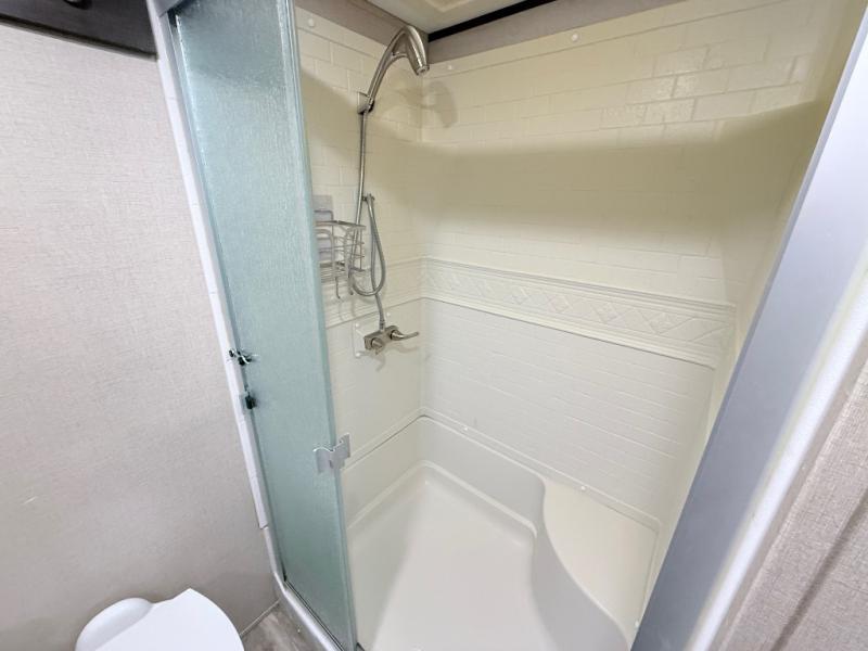 With any Phoenix Lite fifth wheel by Shasta RVs you will appreciate Turn Point engineering that will allow you to turn up to 90 degrees for hassle-free towing and parking. The vacuum bonded and aluminum framed sidewalls with Azdel is lighter than wood, rot-resistant, and provides better insulation. Inside, you will enjoy many comforts such as, Congoleum Carefree flooring, decorative modern window box valences, and a Black Label pillowtop mattress. Head outside to relax under the electric awning with LED lights, or enjoy the marine-grade speakers with LED lighting. There is even an outside shower with hot and cold water to fill the dogs water bowl or wash off your hiking boots!