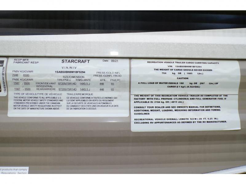 The Starcraft Autumn Ridge travel trailer has been designed just for you! With its forced-air heated and enclosed underbelly, PVC roof membrane, and power awning with LED lights, you can choose to extend your camping season. The Autumn Ridge has flexible LP lines for less corrosion, a Magnum roof system for a fully walkable roof, and tinted safety-glass windows for keeping your interior protected. You will also find an oversized lighted pass-through storage compartment, self-adjusting electric brakes, E-Z Lube axles, and galvanized steel wheel wells. Once you make your way to the interior, you'll appreciate that the Autumn Ridge has no carpet or floor heat registers which makes it kid and pet friendly.