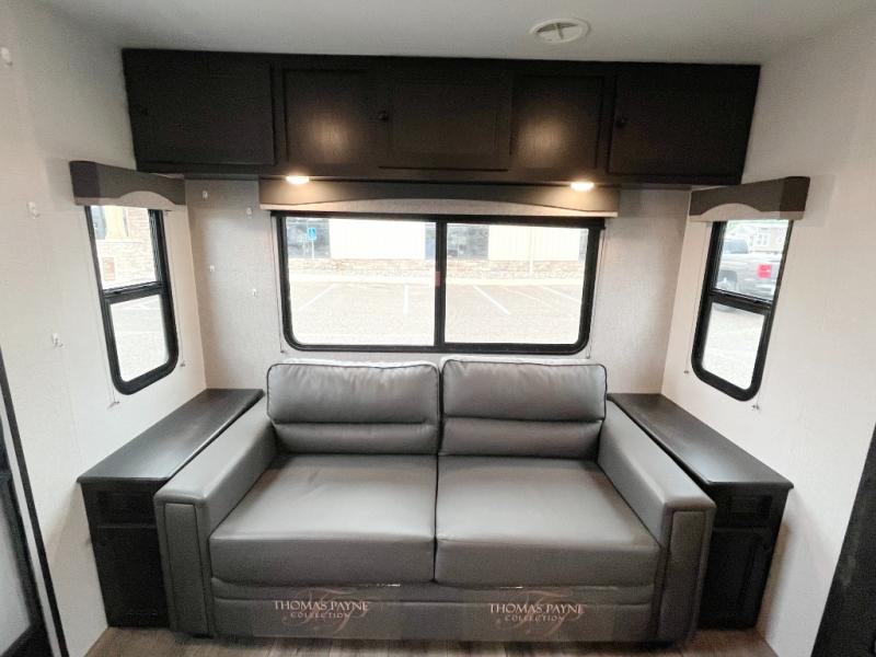This Super Lite travel trailer with a rear living area and a large slide out will feel just like home. You can enjoy your breakfast around the U-shaped dinette before heading to the lake all day, and you can clean up in the full bath once you return. The chef of the family can prepare meals on the three-burner cooktop, and the leftovers can go in the 8-cu. ft. refrigerator. When it's finally time to call it a night, you'll find the front private bedroom is both spacious and comfortable with its queen bed and private exterior entrance!