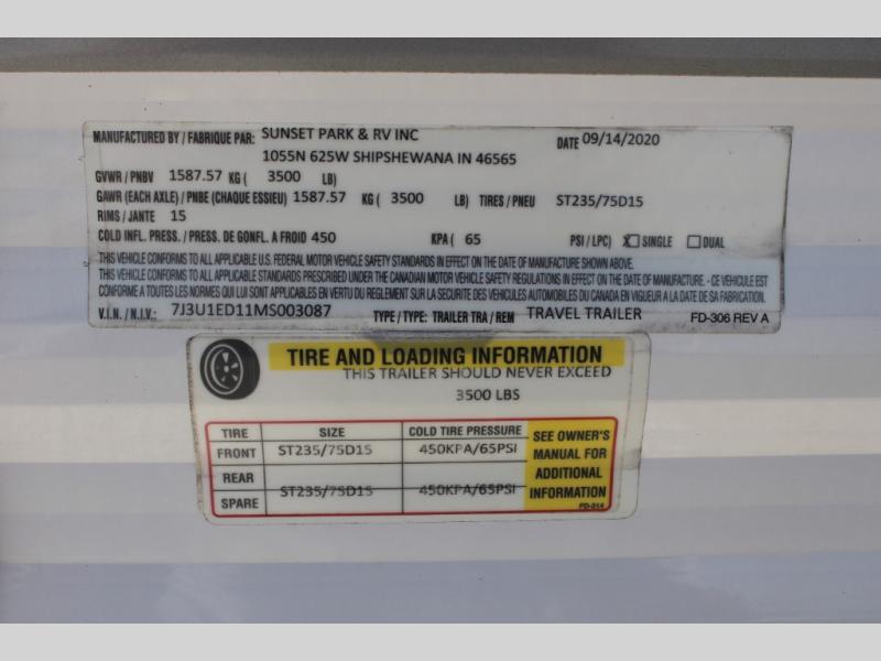 Used 2021 Sunset Park RV Sun-Lite 16BH Travel Trailer