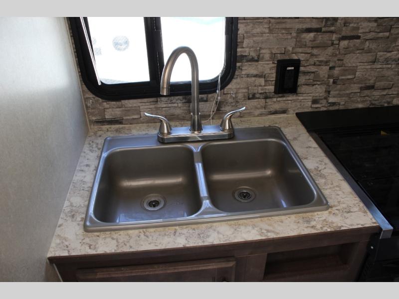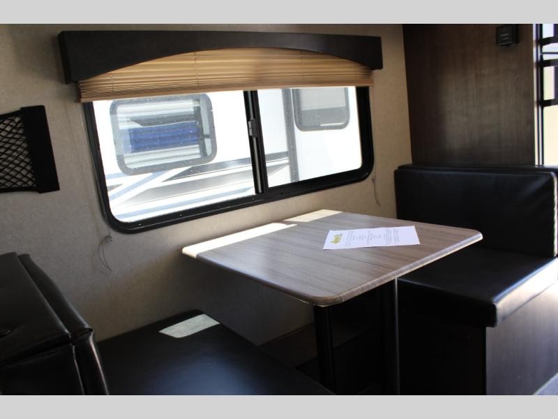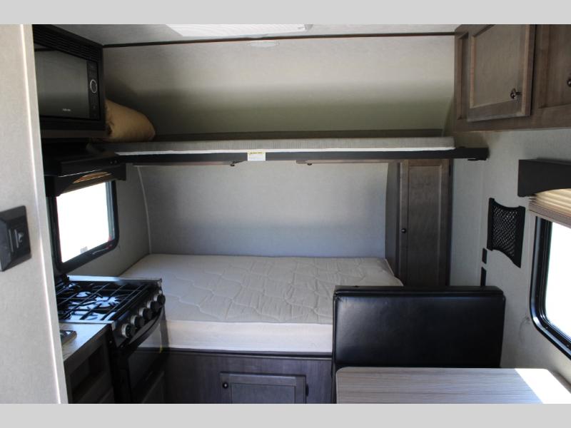 You and your spouse will love this travel trailer that includes a booth dinette for an overnight guest. The two burner cooktop and microwave allow you to prepare breakfast, lunch, and dinner and leftovers can go in the 6 cu. ft. double door refrigerator. You will find plenty of storage for all your items in the overhead cabinets. After spending your day outside, get cleaned up in the tub or shower surround and the power roof vent will keep this space fresh and cool! And you might like to add a bunk option for more sleeping space, a 7' rear awning, a Jack-It 2 bike carrier, and/or more from the options list.
