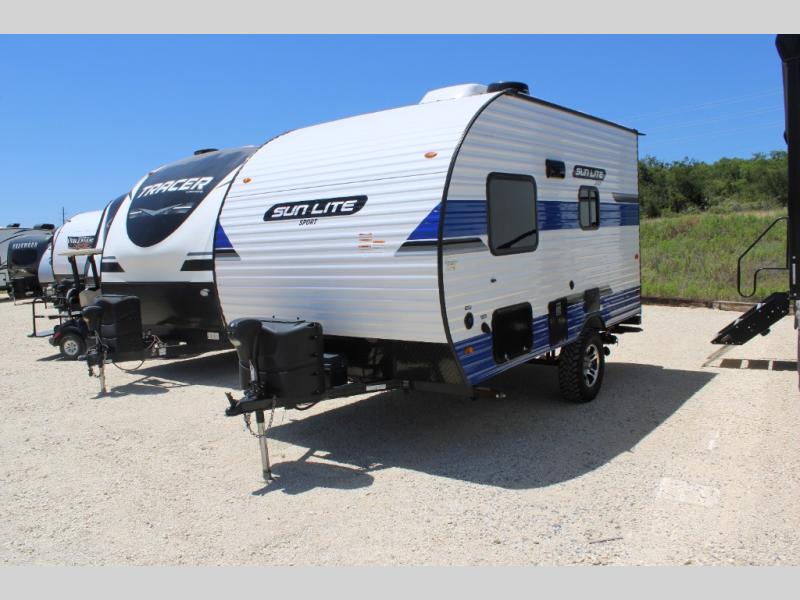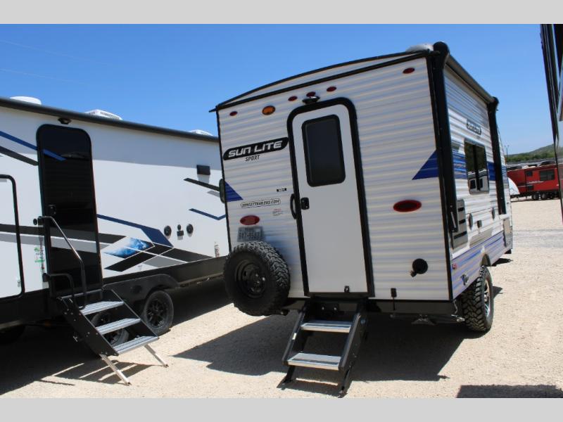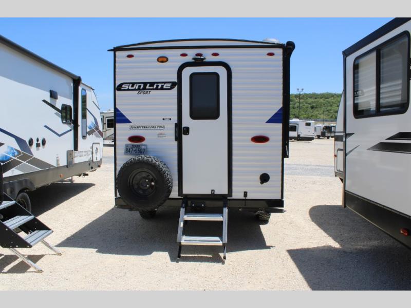 With each Sun-Lite Classic travel trailer by Sunset Park RV you will enjoy the mandatory Comfort Package, which includes a 13.5K BTU A/C to keep you cool in the summer, an outside shower that allows you to fill the dogs' water bowl, and an electric awning to shade you during those hot summer months, plus there is a Bluetooth radio with outside speakers to crank up the tunes. The Confidence Package features a fuel saving aerodynamic profile, radius tinted safety glass windows,16" O.C. construction, and a walkable roof to mention a few items. Choose your favorite layout today!