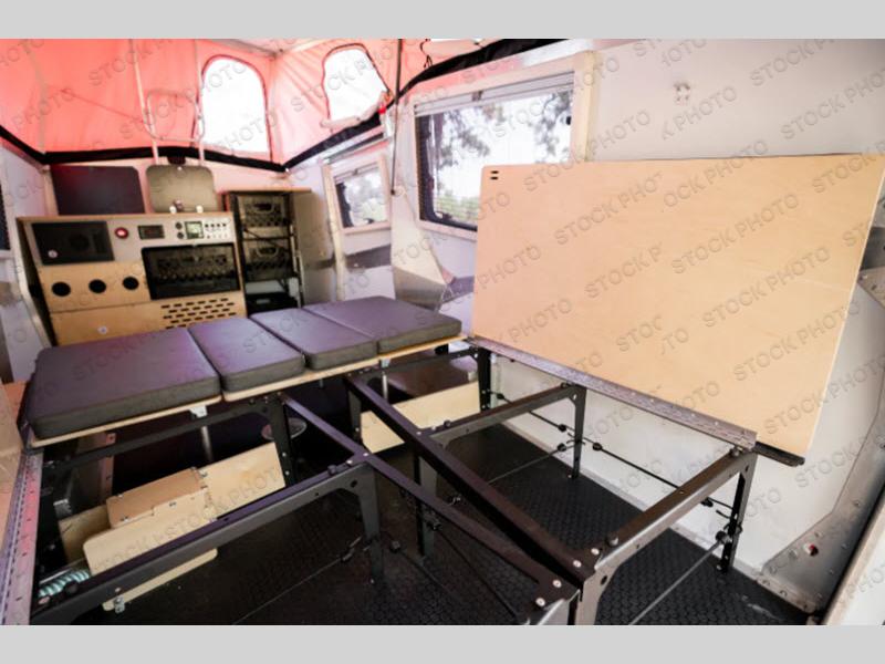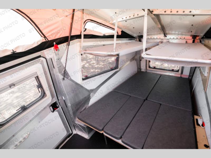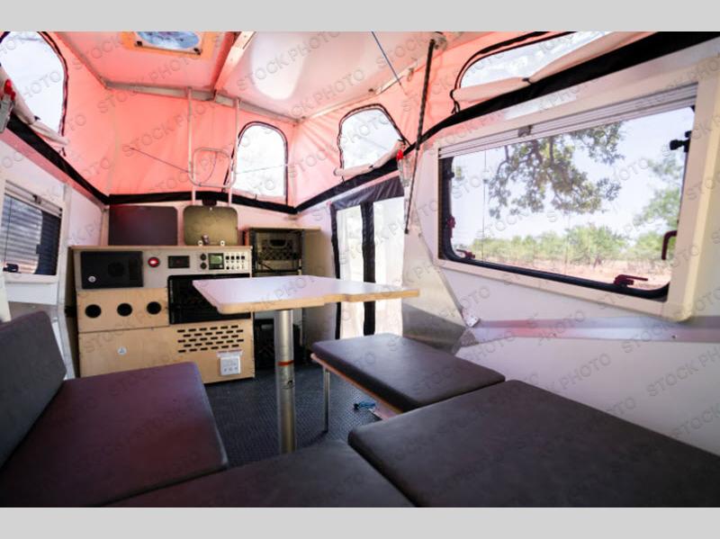 The Cricket travel trailer by TAXA Outdoors features a powder-coated steel chassis and 15" or 16" alloy wheels with all-terrain tires for a sturdy unit that can take you off the beaten path if you choose. The pop-up roof with a steel hinge provides more standing space, and the four stabilizer jacks will give you peace of mind when setting up camp. Inside, you'll appreciate the non-slip seamless Nickel patterned flooring, the high-pressure laminate countertop, and the 12V USB outlets for your tablet or phone. The Cricket also includes a Truma Combi Eco furnace and water heater system, LED exterior lighting, plus a 15-gallon fresh water tank that will make camping feel like a breeze!