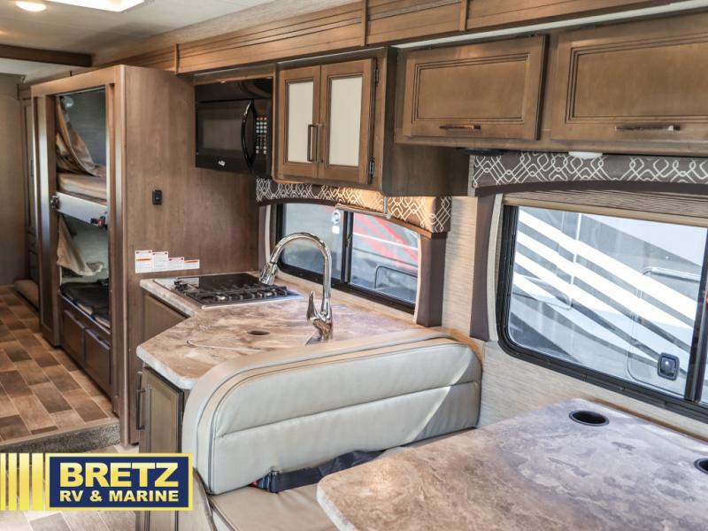 Enjoy the extra space that comes with the full-wall slide in this Chateau Class C gas motorhome! You'll have all the room that you need to spread out and enjoy the master suite, the 68" jackknife sofa, and the 71" Dream Dinette. Plus, your kids will be super excited to find a set of bunk beds as well as a 54" x 96" bunk above the cab. Another handy feature found in this coach is the dual-entry bath which can be accessed from the main living area or the rear bedroom. If you want to take this model up a notch, check out 31E which has a couple of extra features and options that you might like in your next RV.
