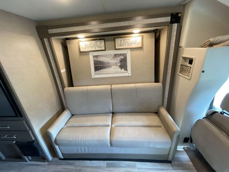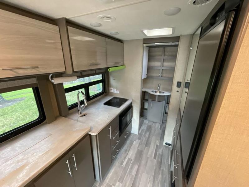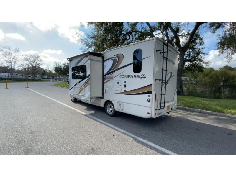 It's time to see the country with this Compass Class B+ gas motorhome! You will enjoy plenty of comfort in this compact coach with the 24" x 36" shower, skylight, and linen closet in the rear bathroom, and the kitchen will be super helpful with its convection microwave, two-burner gas cooktop, large undermount sink, and powered ceiling vent. One of the best features of this coach is the 60" x 74" Murphy bed because it gives you flexibility by allowing you to reveal the sofa for lounging during the day, and since this bed rests upon the single slide, you will have extra walking space on the interior.
