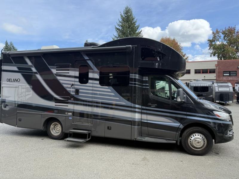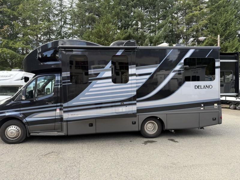 Each Delano Sprinter Class C diesel motorhome by Thor Motor Coach is built on a Mercedes-Benz Sprinter chassis with a welded tubular aluminum roof and sidewall cage construction, a vacu-bond laminated roof, walls and floors with foam insulation, an electric stabilizing system, and a fiberglass front and upper rear cap. Other standard features include the Rapid Camp+ Multiplex Wiring Control System, the Winegard ConnecT 2.0 to stay connected, and the tankless water heater for hot showers whenever you like. Choose a Delano Sprinter to experience modern style and luxury wherever you travel!