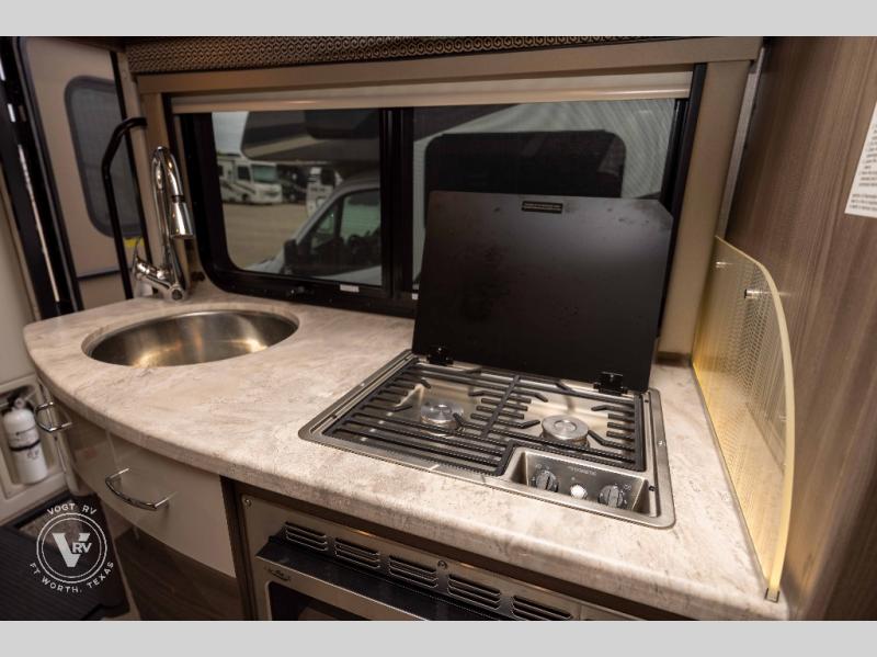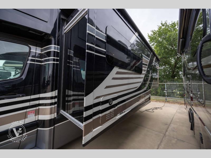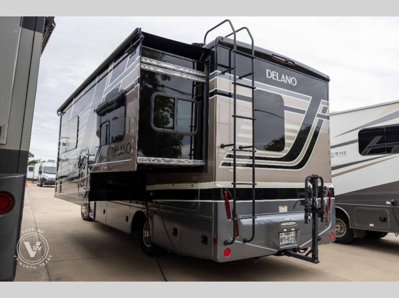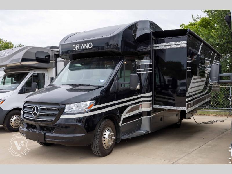 Your family will love this Delano Sprinter Class C diesel motorhome that will comfortably sleep four people each night, and the full-wall slide will provide more interior space. The chef of the family can prepare eggs and pancakes on the two-burner cooktop, and everyone can enjoy breakfast at the 76" Dream Dinette before heading outside for the day. This model includes a full bath so that you can clean up just like you do at home, and you will appreciate the semi-private bedroom with a curtain, a flip-up RV queen bed with cushioned seating underneath, and a 32" LED TV to watch a late-night show once the kids are asleep.