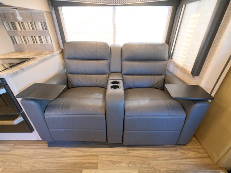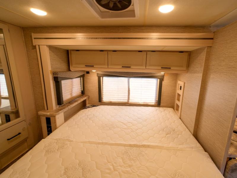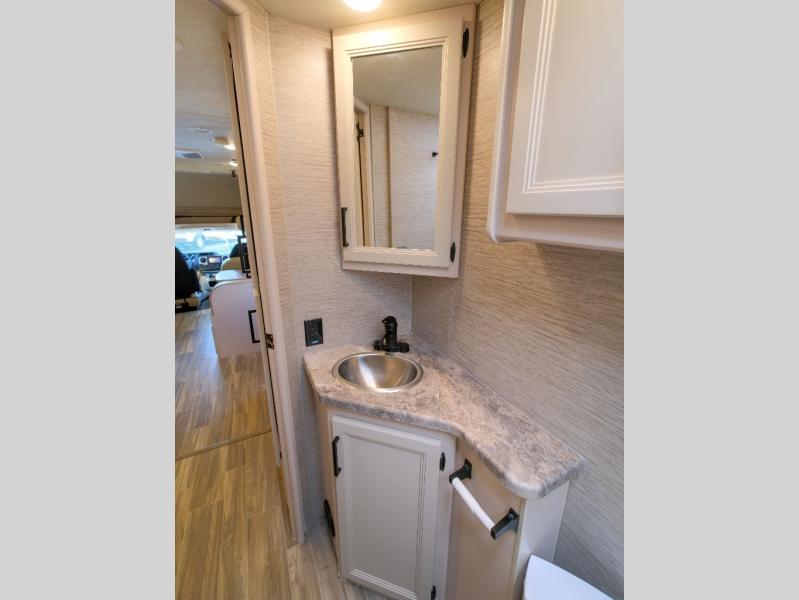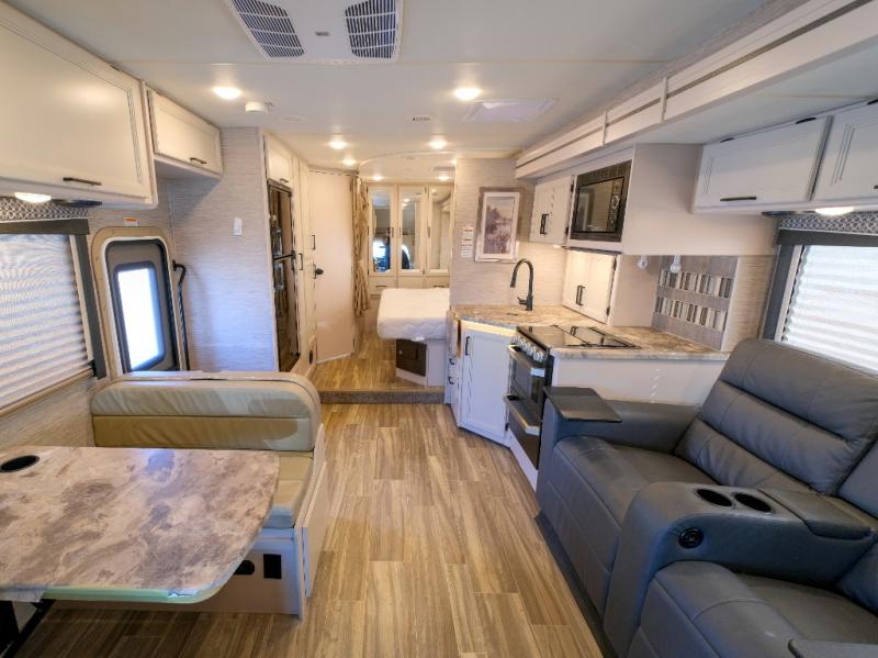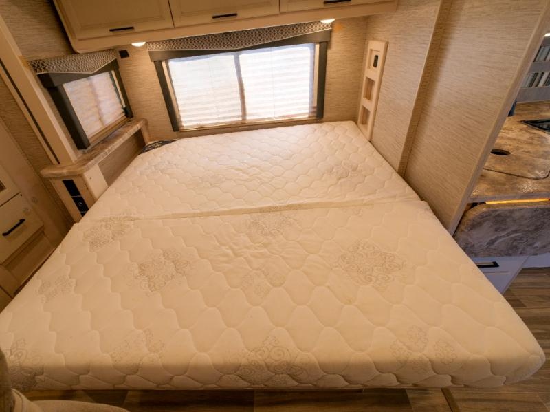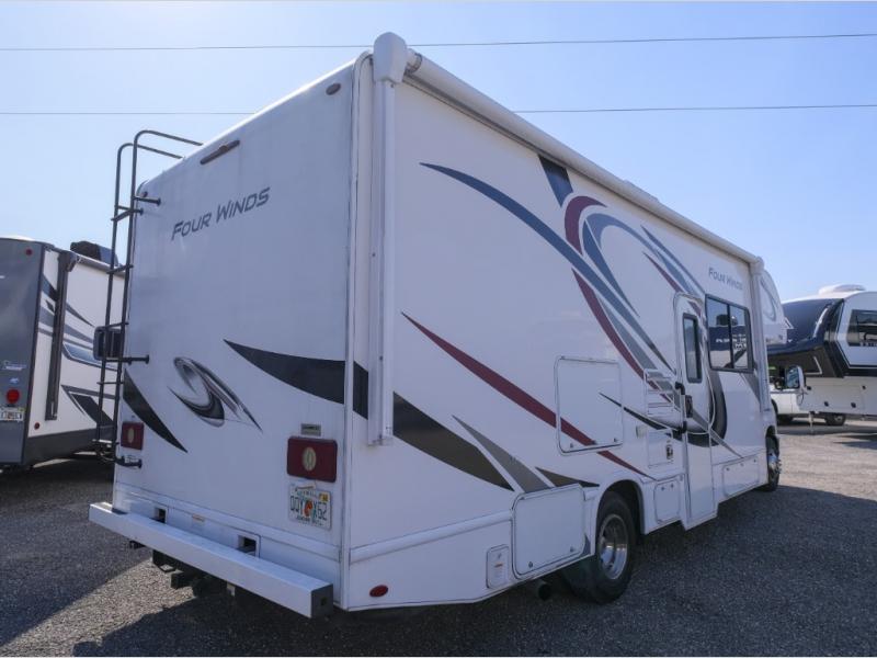 Each one of these Four Winds Class C gas motorhomes are equipped with everything you will want or need! Your adventures will be powered by a 7.3L Ford V8 engine with a 8,000 lb. hitch, and the welded tubular aluminum roof and sidewall cage provide a strong, durable motorhome. The touchscreen dash radio with a back-up monitor will make getting in and out of the campground a breeze, plus each model is SiriusXM ready so you can listen to your favorite tunes if you choose. These models are tech-filled with a Winegard ConnecT 2.0 that works as your WiFi router, 4G hotspot, and TV antenna. You will not only have a comfortable and convenient interior living space, but also a dreamy outdoor living space with the power patio awning with LED lighting, and all your gear can go in the lighted rotocast storage compartments!