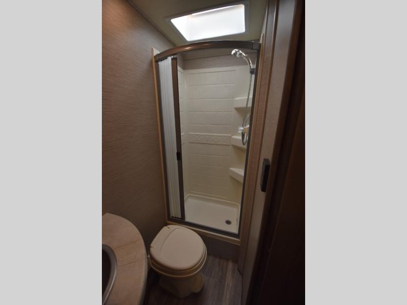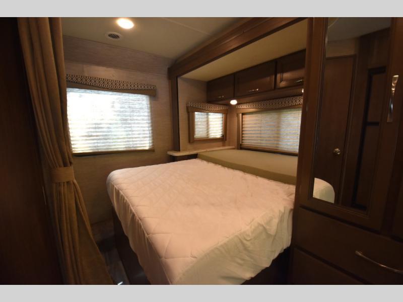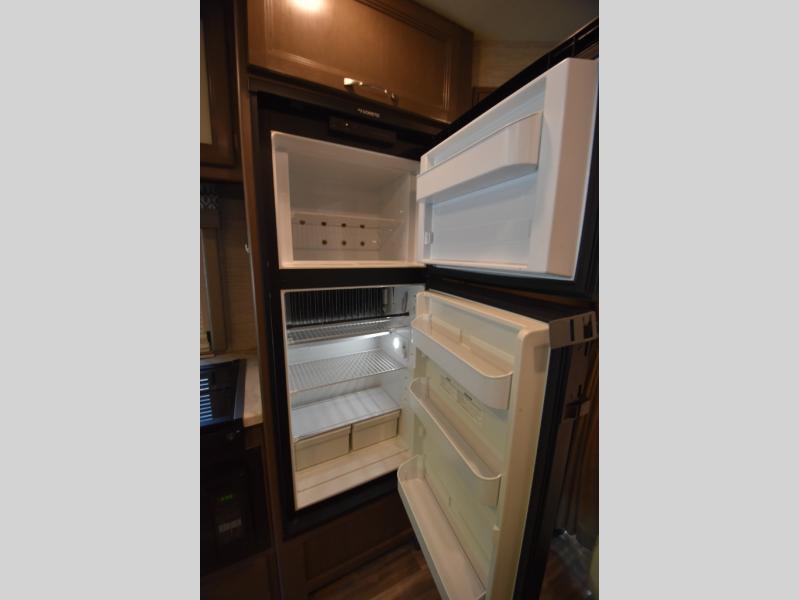 The Freedom Elite also boasts a sleek interior with modern finishes, plenty of storage, and all the conveniences of home—including a touchscreen dash stereo, rear-view monitor, and an Onan generator to keep you powered up wherever you roam.