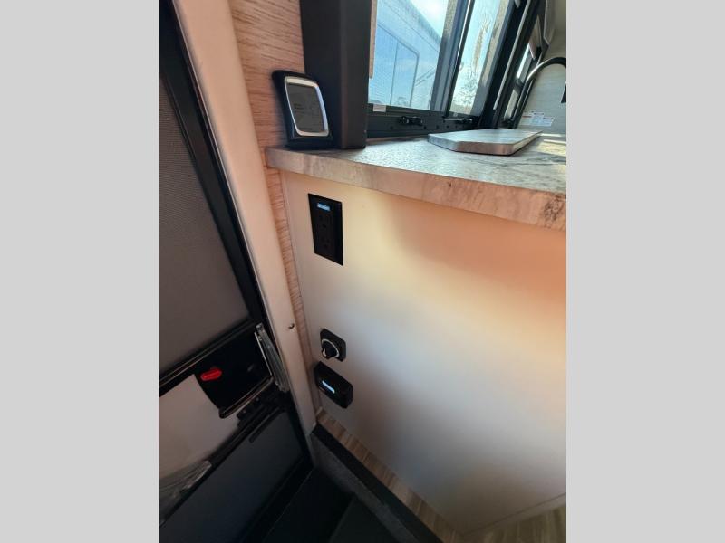 Get ready to set out to new destinations in a Gemini Class B+ AWD gas motorhome by Thor Motor Coach. Along the exterior portion you will find a premium one-piece TPO roof and a one-piece fiberglass front cap with integrated wing walls. Your extra camping gear can be stored in the Rotocast storage compartments with lights, and there is a power patio awning with integrated LED lights which will allow you to sit outside just a bit longer each night. The interior décor of the Gemini has a modern and classy look with its residential vinyl flooring, Euro-style cabinet doors, and pressed laminate countertops, plus the Winegard ConnecT 2.0 WiFi/4G/TV antenna will keep you connected!