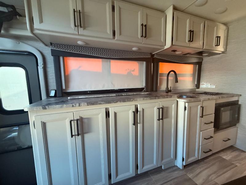This Gemini Class B+ AWD gas motorhome is exactly what you and your spouse need for your vacation this year! With the right amount of space and the right amount of features, you can't go wrong with this model! Instead of taking up precious interior living space with a cumbersome bed, you will enjoy the functionality of the 60" x 74" Murphy bed that can fold away during the day to provide you with a sofa for relaxing. Wherever you choose to go, you'll always have your own private bathroom and 24" x 36" shower to keep you clean so that you don't have to seek out public restrooms along the journey, and you can even prepare your own meals throughout the trip too because of the two-burner gas cooktop and convection microwave in the kitchen.