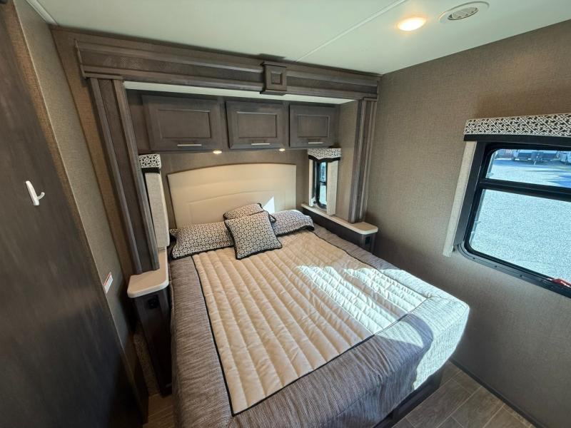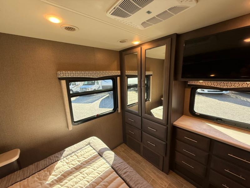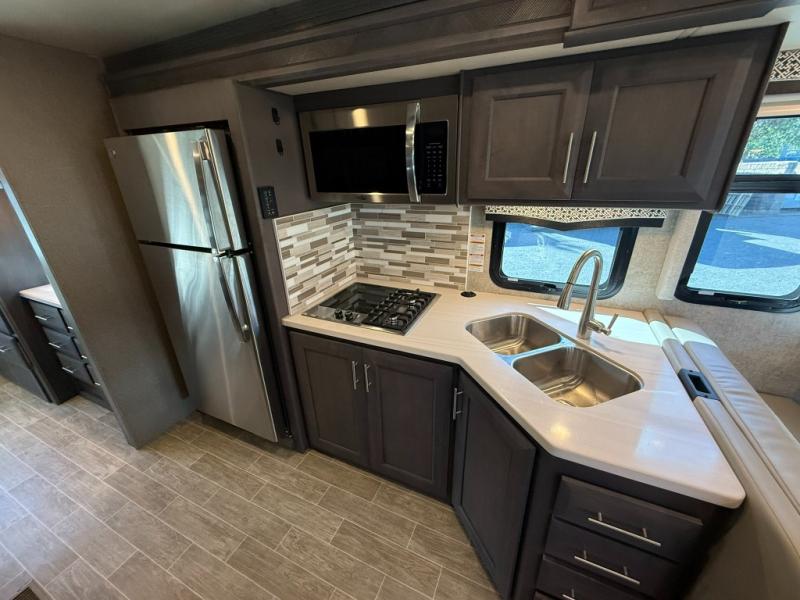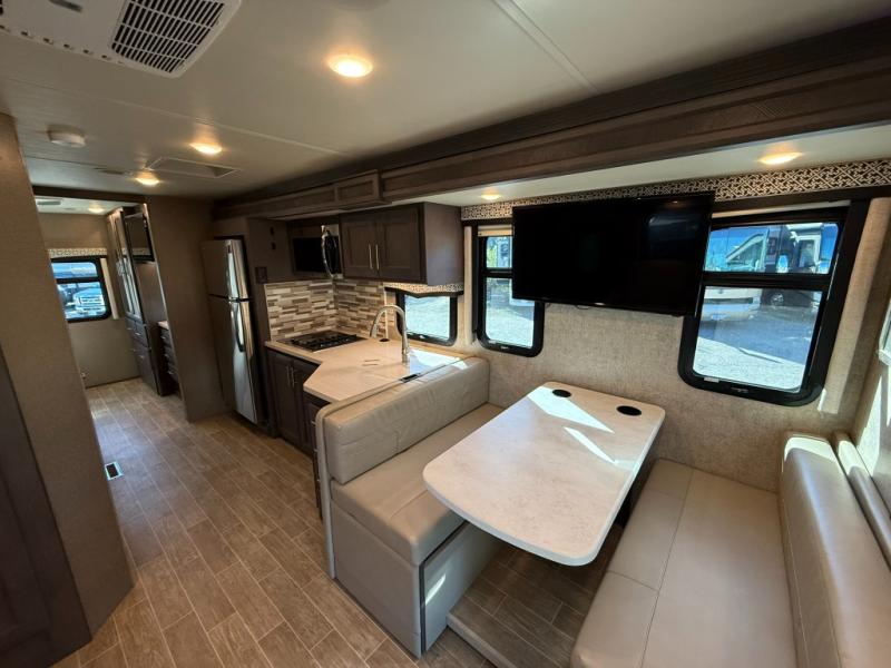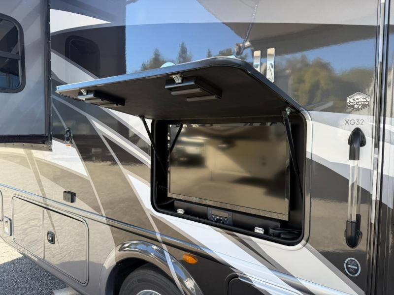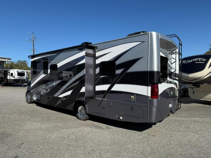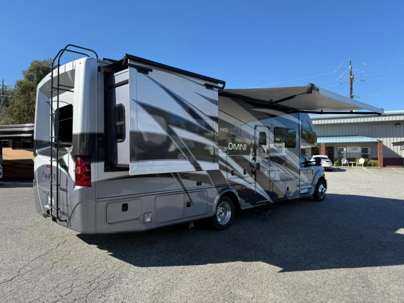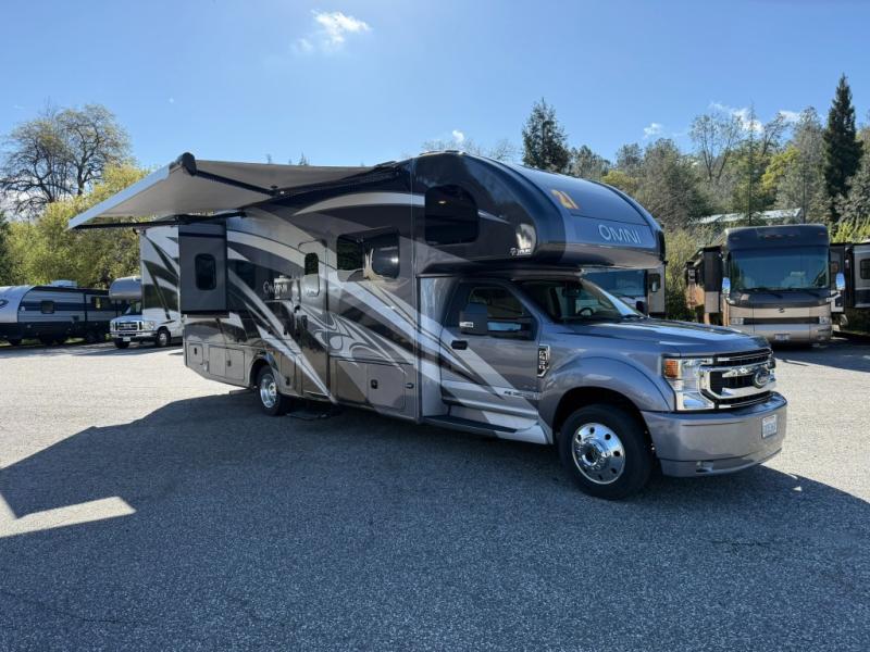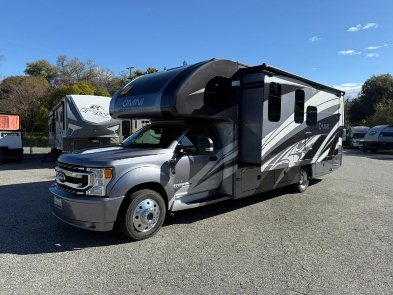 Enjoy luxury and power wherever the road takes you in this 2021 Omni XG32! Designed for couples or small families, this Super C diesel motorhome sits on a rugged Ford F-550 chassis and features a full wall slide for a roomy interior. The rear bedroom with a queen bed offers privacy, while the cab-over bunk and convertible seating provide extra space for guests. You'll love having a residential-style kitchen, a full bath, and entertainment options both inside and out.