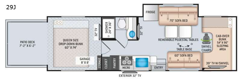 | TV Info | Cab 39" TV, LR 32" TV, Garage 32" TV, Ext. 32" TV |