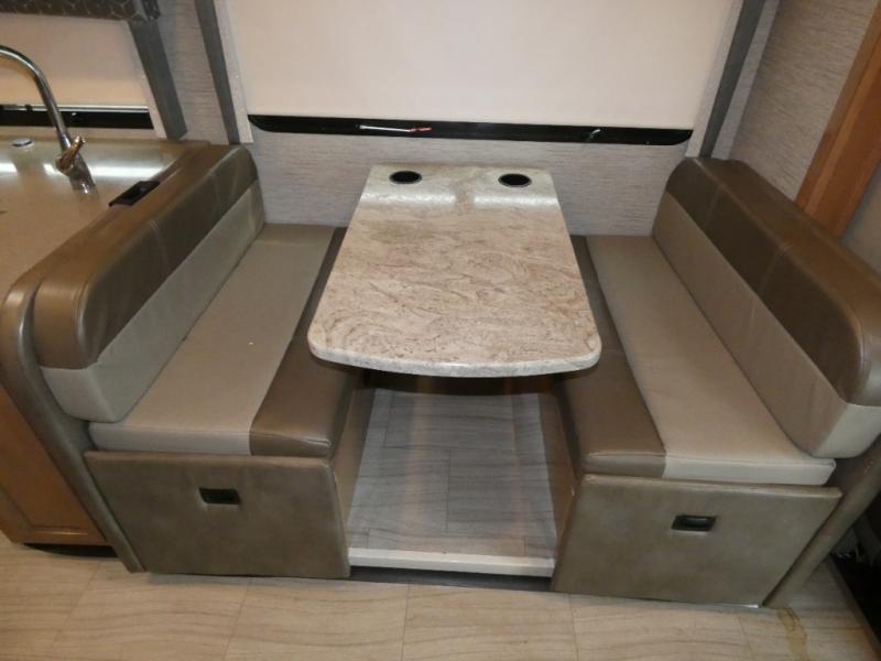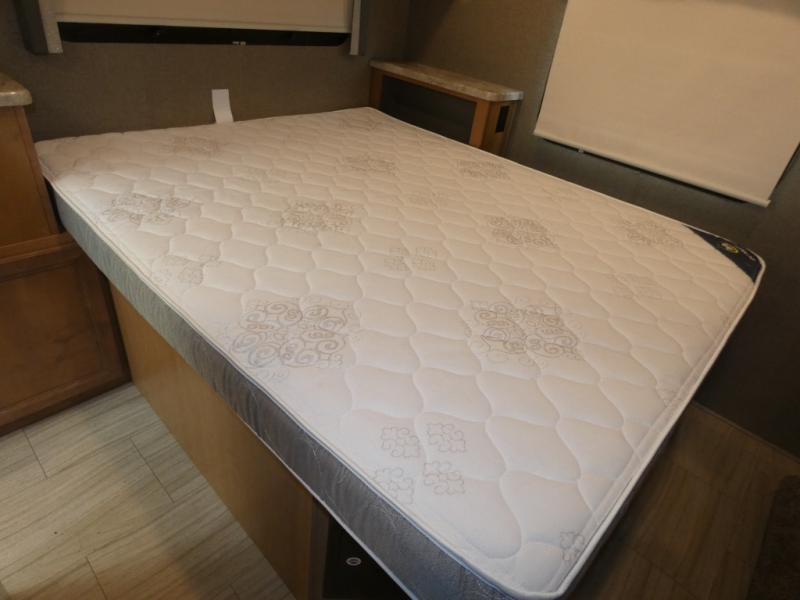 With any Quantum Class C gas motorhome, the construction includes a welded tubular steel floor, a welded tubular aluminum roof and sidewall cage construction, a premium one-piece TPO roof, plus black framed windows or frameless slider windows depending on the Quantum you choose. The interior offers decorative glass inserts in the kitchen overhead cabinet doors and kitchen accent countertop lights for the style, full extension metal ball-bearing drawer guides, plus a 7-inch touchscreen dash radio with a back-up monitor the driver will appreciate. The Platinum package comes standard and offers stainless steel wheel liners, premium window privacy roller shades, and an outside shower plus more! No more dreaming, you can choose your favorite Quantum and start your RVing lifestyle!