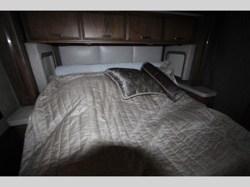 With any Tuscany Class A diesel motorhome by Thor Motor Coach, you will find a finely constructed motorhome with a welded tubular aluminum roof and sidewall cage construction, vacu-bond laminated roof, walls and floor with block foam insulation, and a domed fiberglass roof on a Freightliner XC-R chassis with Atlas Foundation. The VIP tilt/telescoping smart wheel, the 15" touchscreen dash radio with Bluetooth, Garmin RV GPS navigation, and back-up monitor, and the Winegard ConnecT 2.0 WiFi/4G/TV antenna provide the technology that makes traveling safe and easy. The interior offers comfortable furniture, solid-surface countertops, a designer tile backsplash, a residential tile shower with door, plus so much more, so choose a Tuscany today!