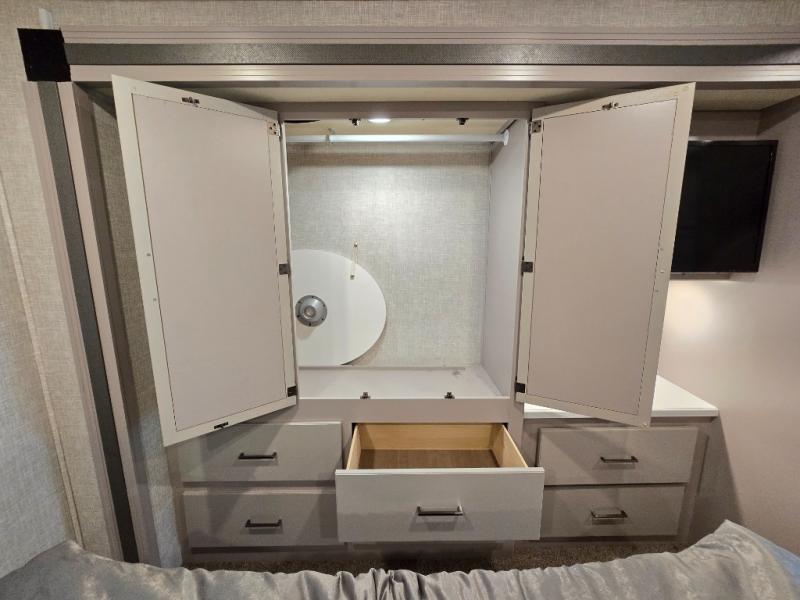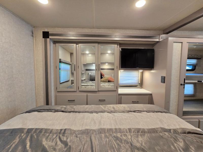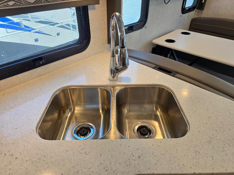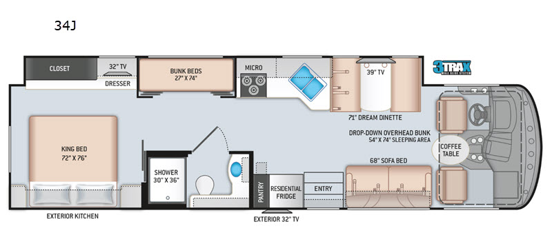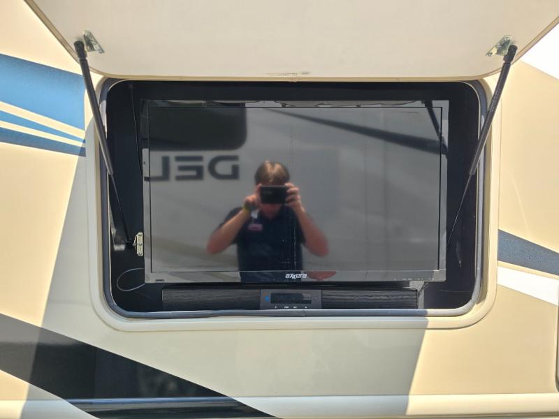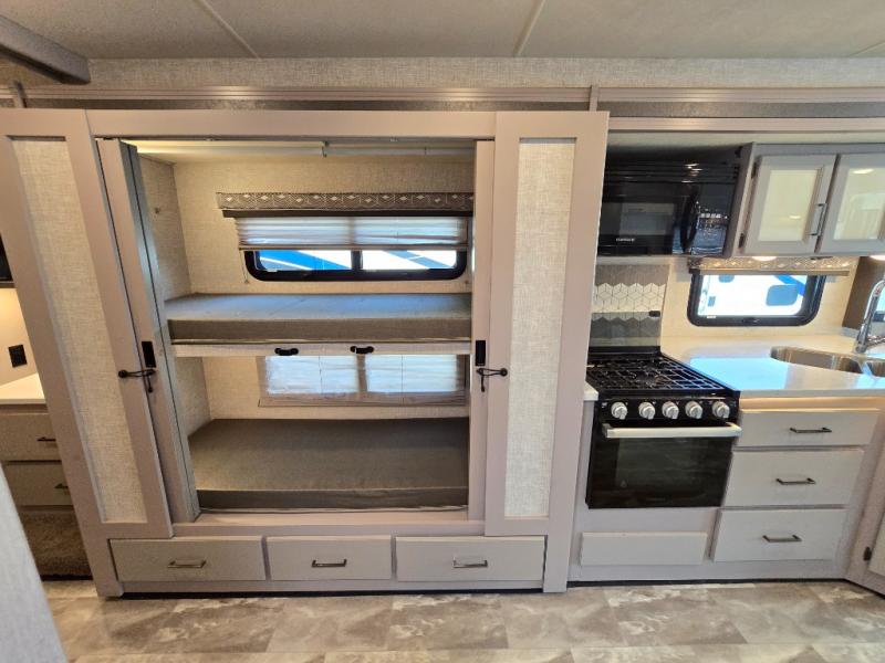 Traveling just got a lot more sweeter when you step inside this Windsport Class A gas motorhome. This model features a spacious interior thanks to a full-wall slide, and the kids are much happier knowing they have their own space. Starting with the swivel captain's chairs, a sofa bed and Dream Dinette for the kids, and a total of seven seat belts, everyone can ride in safety and comfort. The full kitchen and complete bath make your journey that much more enjoyable allowing you to stop wherever you like. The bunk beds will give the kids some privacy, and you can choose to add TVs for their enjoyment. The exterior 32" LED TV and 18' awning with LED lighting provide an entertaining space outdoors along with an exterior kitchen.