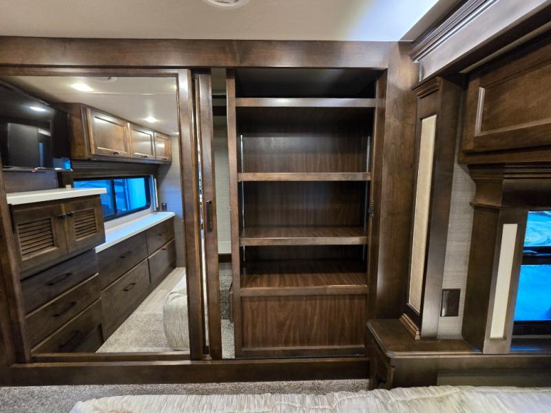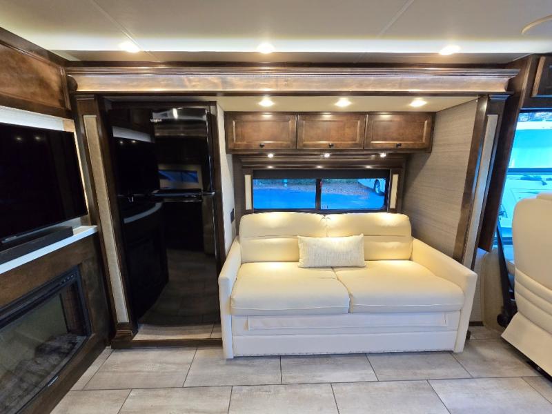 How does traveling with your own accommodations sound to you? This ultra-glamorous Allegro Breeze Class A diesel motorhome lets you experience high-gloss flat-panel solid-wood cabinet doors, luxurious interior decor, and luxurious tile flooring while out on the open road. The Ultraleather cockpit seats and furniture will make any trip pleasurable. You can keep your electronics charged with the USB ports, and you can relax on your own king memory foam mattress. If you enjoy cooking, the solid-surface countertops offer a great place to prepare the food, and you will love the pull-out pantry and the convection microwave. You might even like to add on a few optional features such as a dinette with a computer workstation, a smaller refrigerator, a combo washer/dryer to the bedroom prepped space, and even a fireplace in the main living area.
