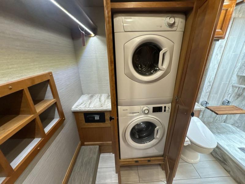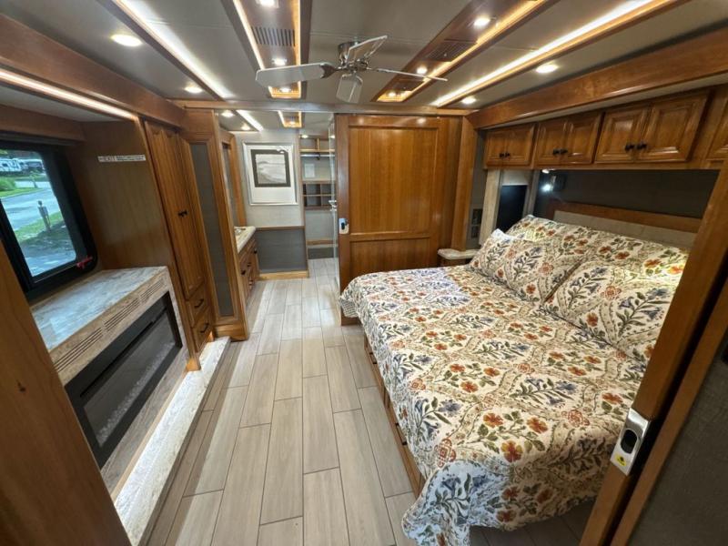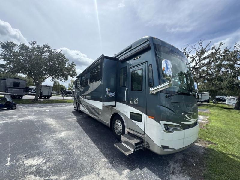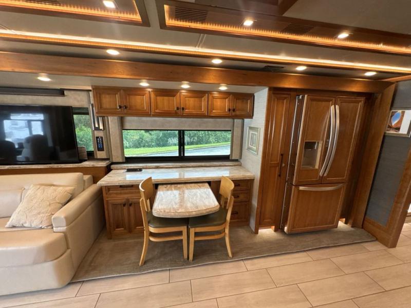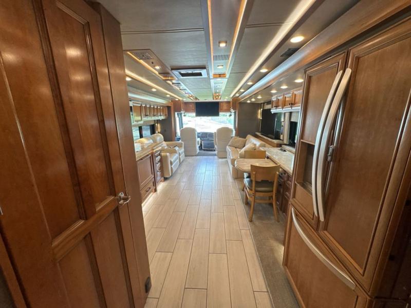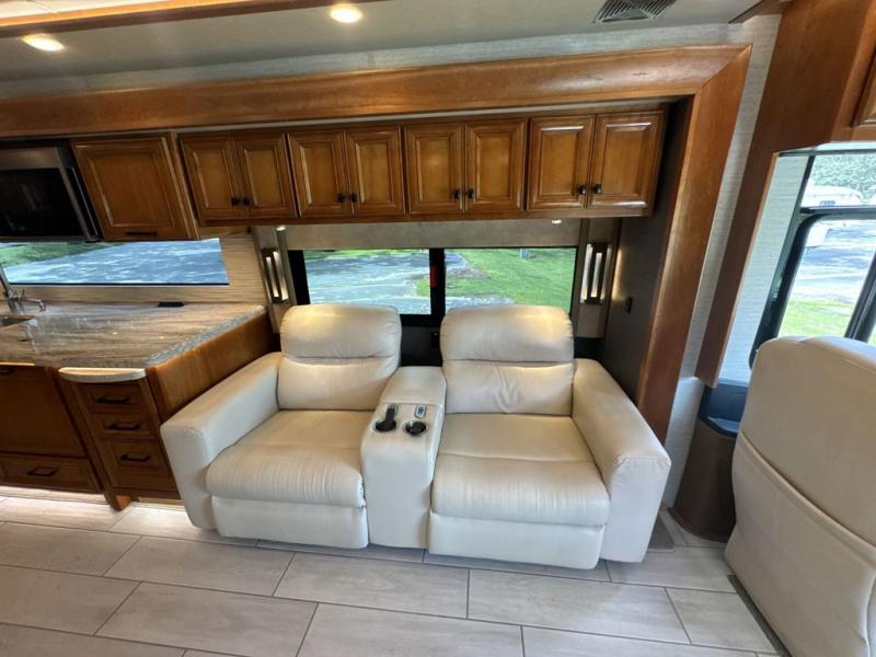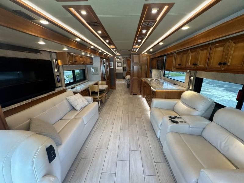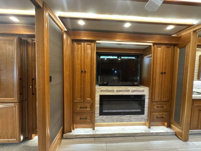 With four slides, two sofa beds, a dinette/computer station with chairs and captain's chairs, your family will have plenty of walking around space and seating. There is an ottoman as well. You and your spouse will love the master suite that includes a king bed with nightstands, a TV, dual bath sinks in the full bath, and a floor-to-ceiling closet that allows you to bring all of your belongings along. You might even like to add a washer/dryer option to the prepped space. The chef of the family will love cooking in this kitchen that features a two-burner induction cooktop, an expand-an-island for more counter space, a residential refrigerator, and two pantries for all the dry goods. You might even like to add a few options such as a U-shaped booth dinette, two leather recliners with a small table, and/or an outdoor grill center, and more. You can also choose the 605 HP option with a Cummins X15 and 605 HP!
