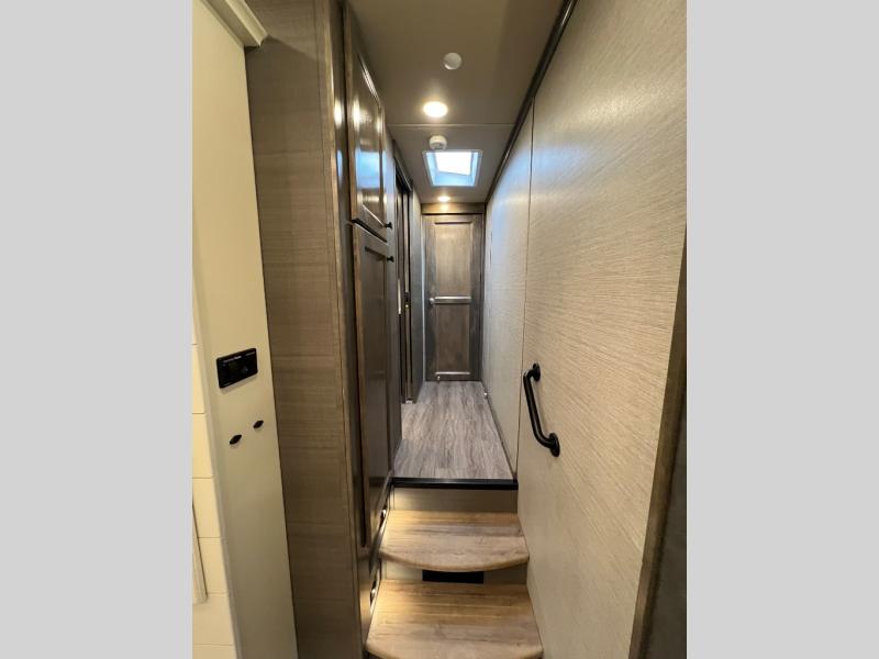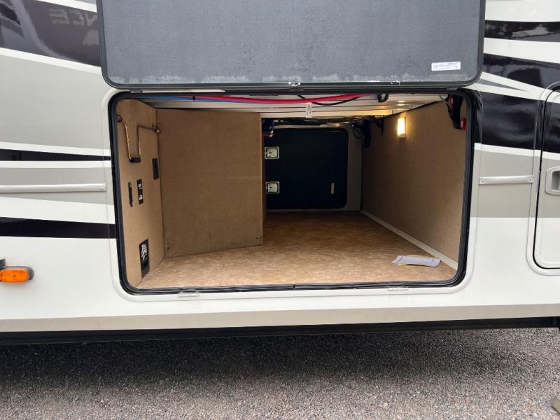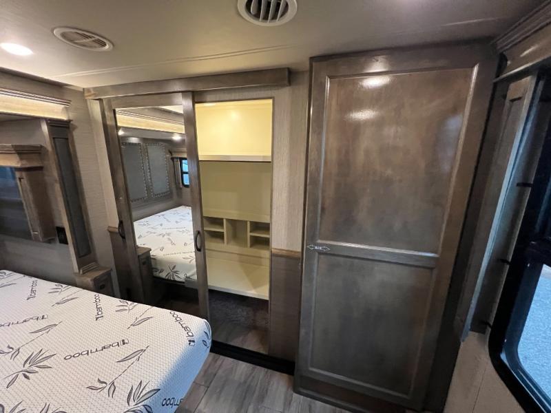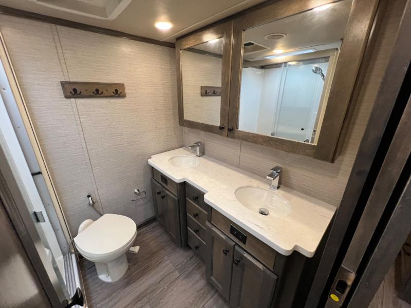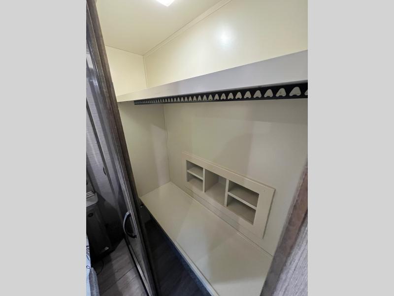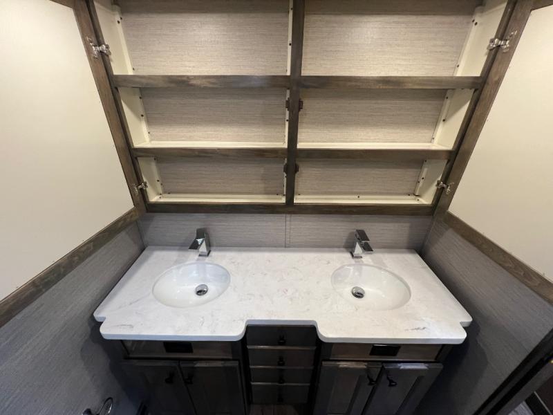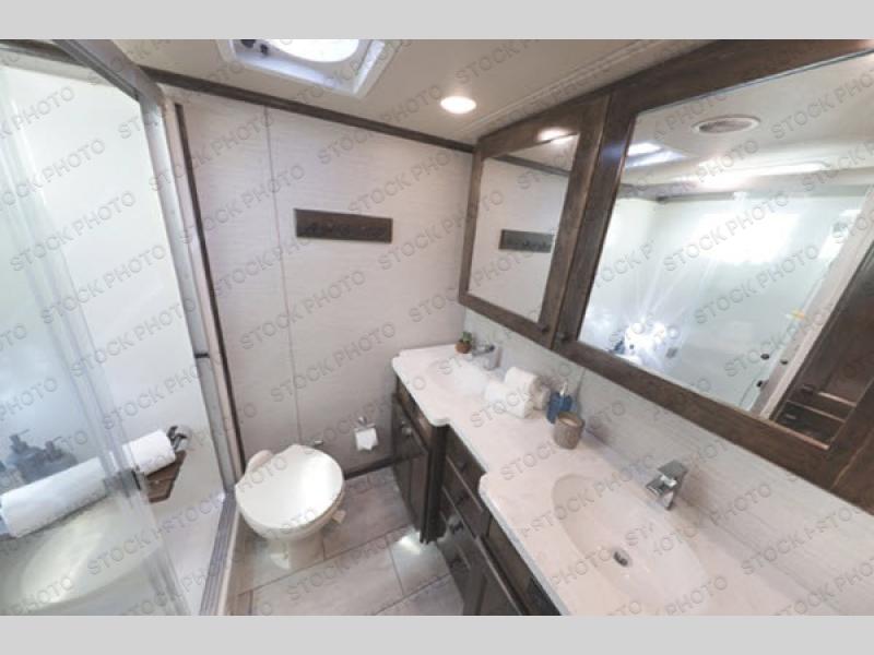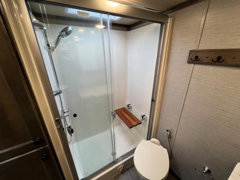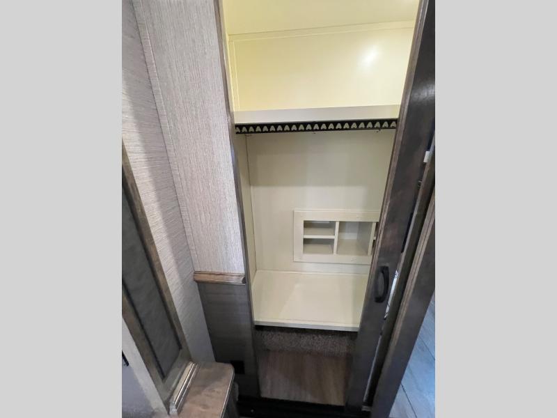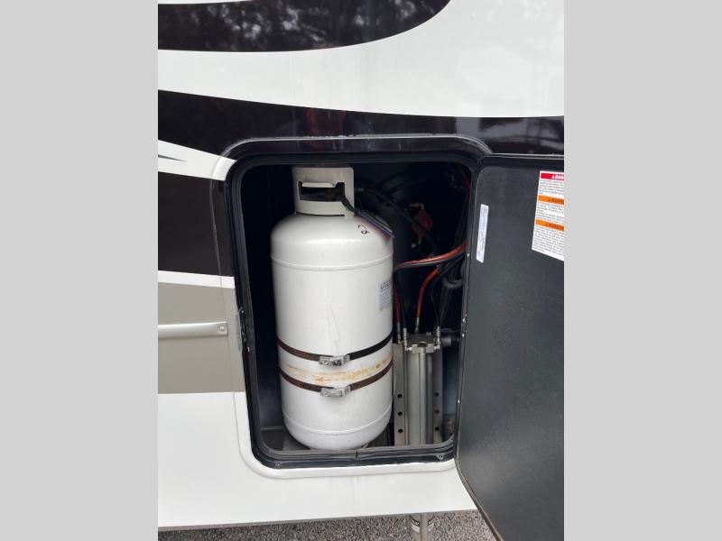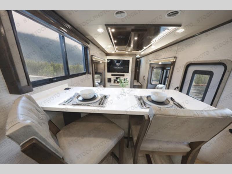 You will thoroughly enjoy every minute spent in this luxurious fifth wheel. Each room is packed with high-end features, such as a Chef Collection oven and cooktop, a residential refrigerator, a 40" fireplace, and a spacious 48" x 30" shower with a seat. While the chef of the family is preparing dinner, the kids can color at the bar style dining table that has a great view of the 55" TV. Within the main living area you will find dual tri-fold sofas within the dual opposing slides, plus a 60" theater sofa for complete comfort. Everyone can easily clean up in the spacious full bath that includes dual bath sinks and a medicine cabinet for your necessities, plus there is a hall closet conveniently located just outside the door to grab a clean towel on your way to shower. You and your spouse will fall in love with the front bedroom that includes a slide out king bed, a Hi-Boy dresser with a TV above, a window seat cabinet, and a large front closet with sliding doors to store your clothes. There is even a space to add an optional washer and dryer for your convenience.