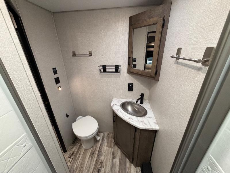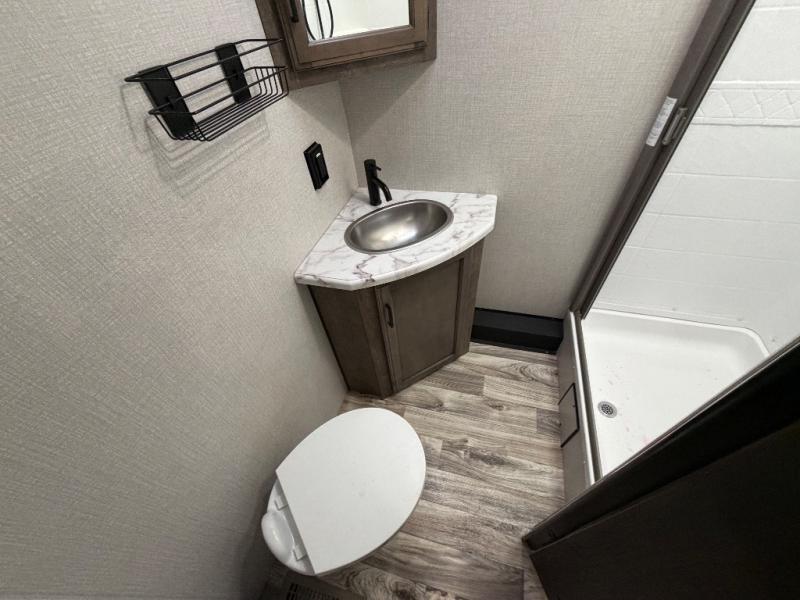 Every one of these SportTrek Touring Edition travel trailers by Venture RV have been built with a new sleek exterior that includes a painted fiberglass front cap with an integrated LED lighting! The Weather-Shield package includes insulation components that will allow you to camp in any season like the enclosed gate valves, the 360 degree radiant foil insulation, the radiant foil-wrapped tanks, and the reflective PVC roof membrane. Their solid construction offers peace of mind, as well as the comforts of home with the modern farmhouse design and the Venture connectivity board with Bluetooth control. There is a wide range of models for you to choose from, so come find the perfect one for you today!