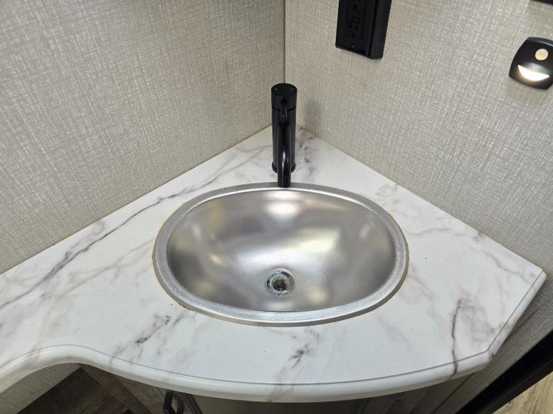 You can explore and relax with the lightweight Venture RV SportTrek travel trailer! The Venture-exclusive LevelMate PRO is going to make it easy to set up your trailer so that you can get to the fun activities sooner, and the Weather-Shield Package has an enclosed and heated underbelly, enclosed gate valves, 360-degree residential fiberglass insulation, and a reflective PVC roof membrane so that you can travel confidently. The NXG Huck bolt frame is a superior-quality frame constructed with high-strength low-alloy steel, which eliminates frame failures, construction issues, and corrosion caused by incomplete coverage. Some of the other enticing features of the SportTrek are the HDMI/DVD stereo, slam-latch baggage doors with magnetic catches, power tongue jack, hot/cold outside shower, Keyed Alike key system, and the Safe-Tek hidden storage with charging center..