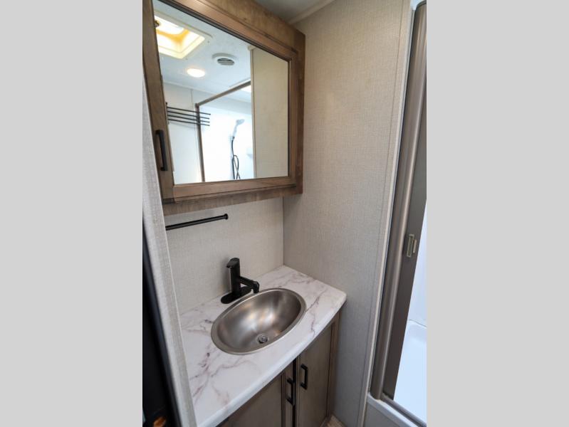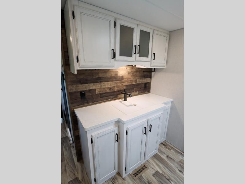 Every one of these SportTrek Touring Edition travel trailers by Venture RV have been built with a new sleek exterior that includes a painted fiberglass front cap with an integrated LED lighting! The Weather-Shield package includes insulation components that will allow you to camp in any season like the enclosed gate valves, the 360 degree radiant foil insulation, the radiant foil-wrapped tanks, and the reflective PVC roof membrane. Their solid construction offers peace of mind, as well as the comforts of home with the modern farmhouse design and the Venture connectivity board with Bluetooth control. There is a wide range of models for you to choose from, so come find the perfect one for you today!