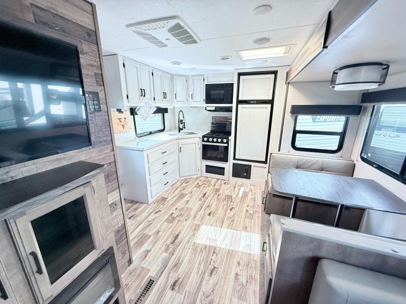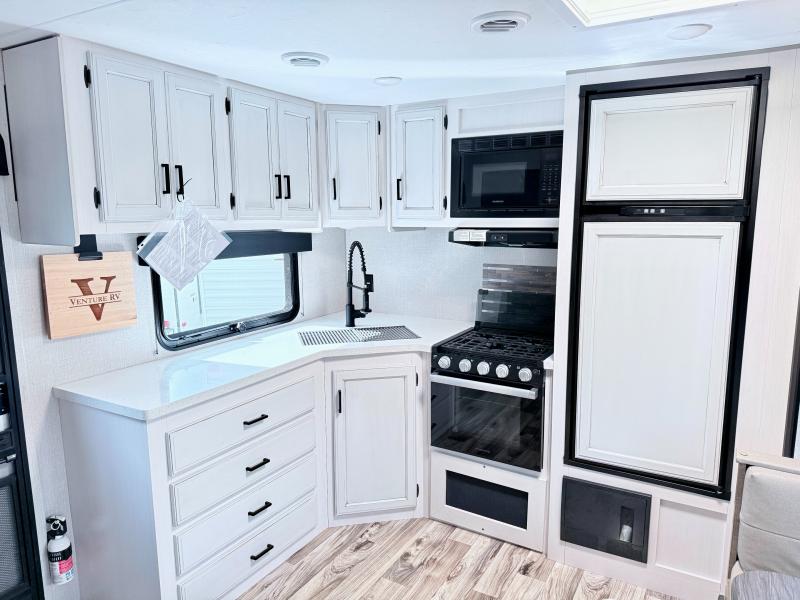 Every one of these SportTrek Touring Edition travel trailers by Venture RV have been built with a new sleek exterior that includes a painted fiberglass front cap with an integrated LED lighting! The Weather-Shield package includes insulation components that will allow you to camp in any season like the enclosed gate valves, the 360 degree radiant foil insulation, the radiant foil-wrapped tanks, and the reflective PVC roof membrane. Their solid construction offers peace of mind, as well as the comforts of home with the modern farmhouse design and the Venture connectivity board with Bluetooth control. There is a wide range of models for you to choose from, so come find the perfect one for you today!
