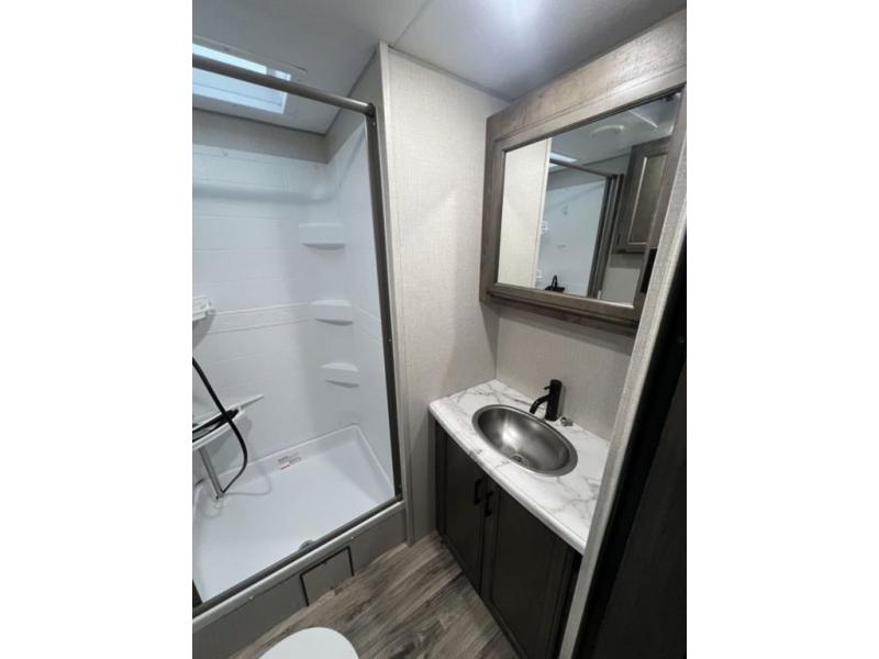 Every one of these SportTrek Touring Edition travel trailers by Venture RV have been built with a new sleek exterior that includes a painted fiberglass front cap with an integrated LED lighting! The Weather-Shield package includes insulation components that will allow you to camp in any season like the enclosed gate valves, the 360 degree radiant foil insulation, the radiant foil-wrapped tanks, and the reflective PVC roof membrane. Their solid construction offers peace of mind, as well as the comforts of home with the modern farmhouse design and the Venture connectivity board with Bluetooth control. There is a wide range of models for you to choose from, so come find the perfect one for you today!