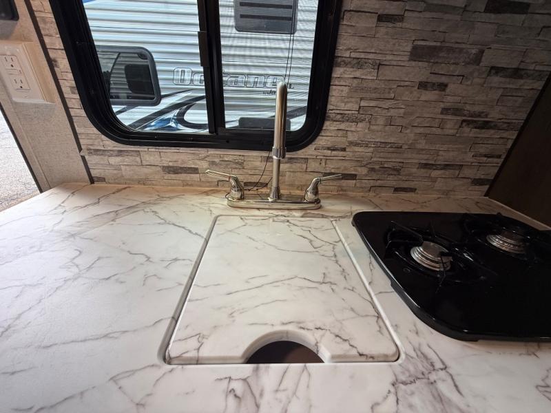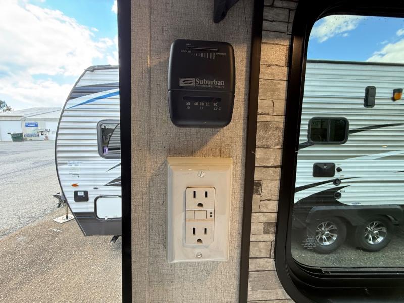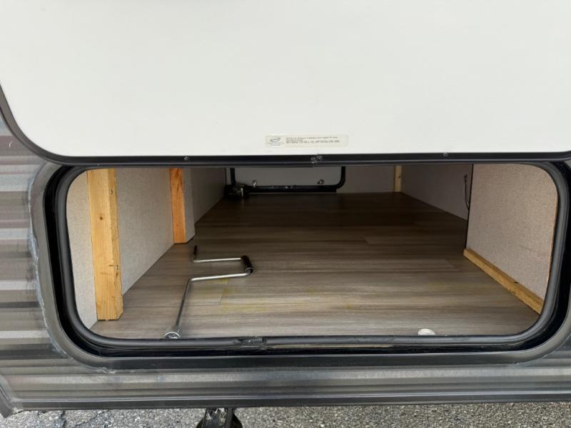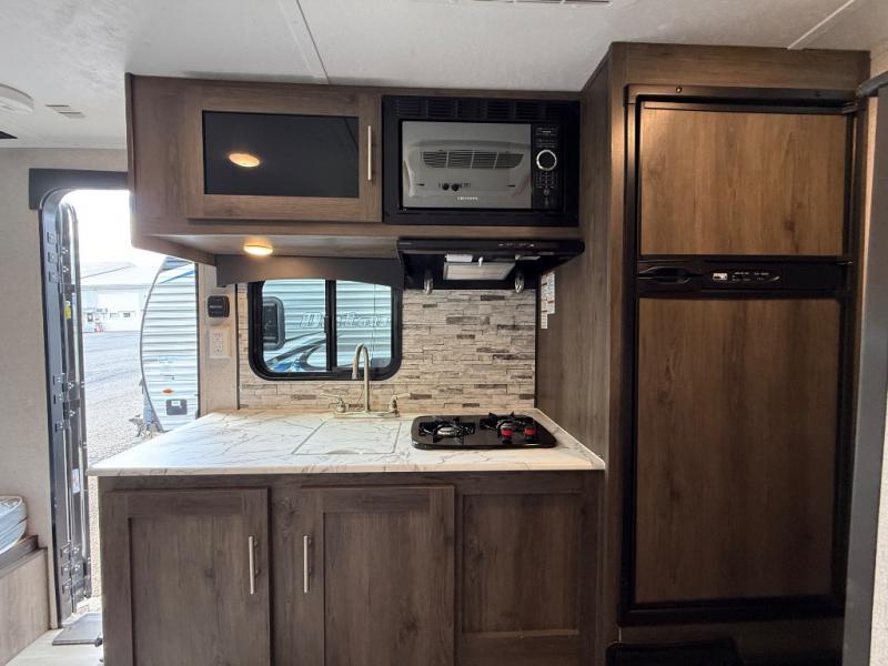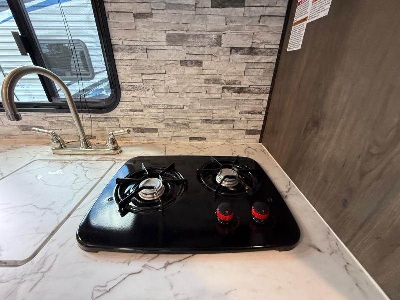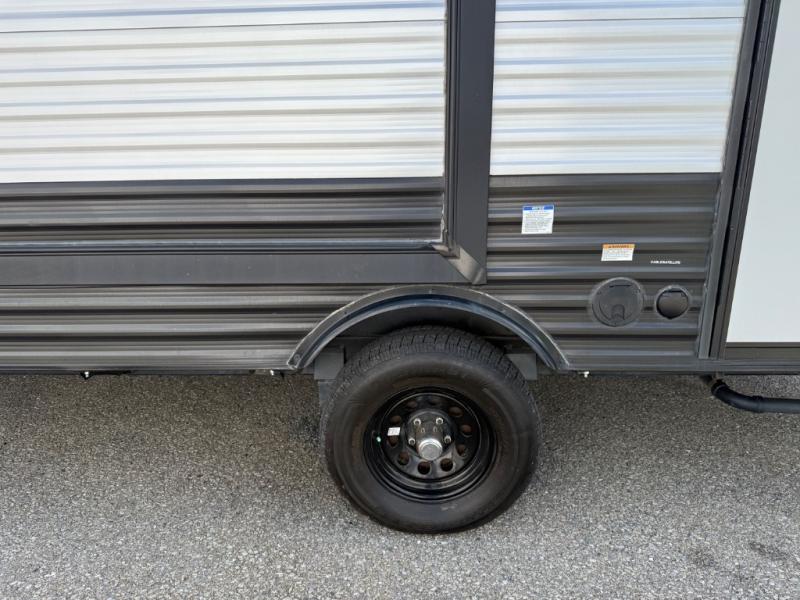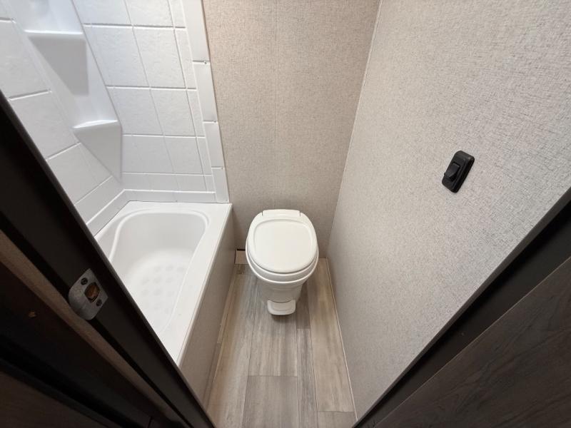 This family-friendly trailer allows you to get away quickly to have fun in the great outdoors! The kiddos or your friends can choose the top or bottom bunk or the booth dinette while you get to sleep on the double-size bed up front. The convenience of a private tub and toilet allow you to get ready for the next adventure without having to wait in line at the public restroom, and the 12' power awning will be the perfect place to sit under and watch the kids play!