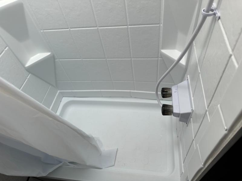 Shower, toilet, and vanity bring everyday comfort wherever you camp.