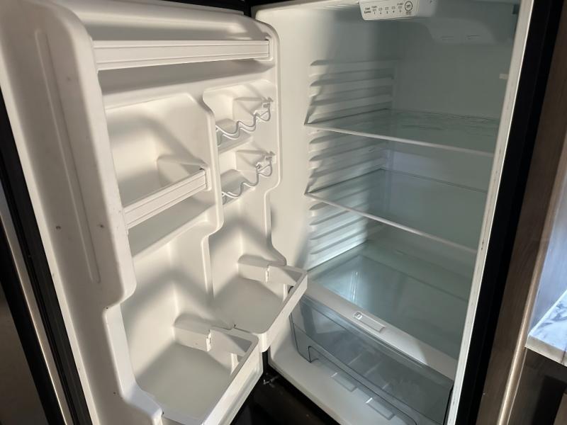Cooktop, microwave, and refrigerator make meal preparation simple and fun on the road.