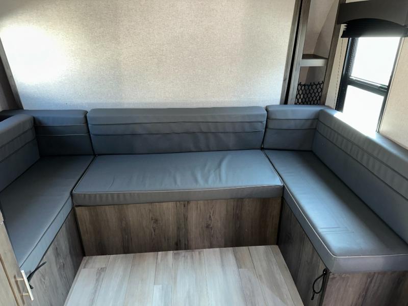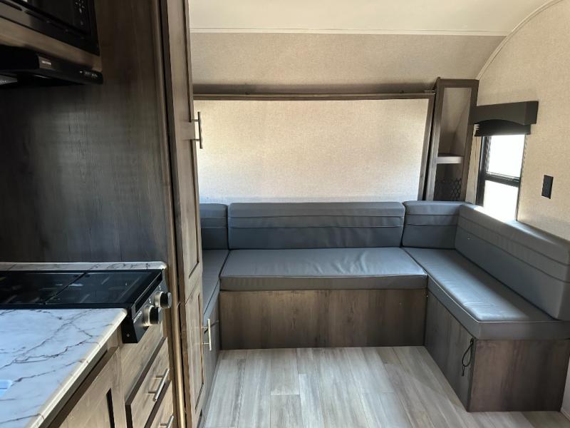 Step inside the Viking 182DBU and be greeted by a welcoming interior that maximizes space and natural light. Large panoramic windows create an open, airy feel and bring the beauty of your surroundings into every room. The convertible dinette and sofa offer flexible seating arrangements for dining, relaxation, and planning your next adventure, making this travel trailer ideal for couples, small families, or friends who love exploring together.