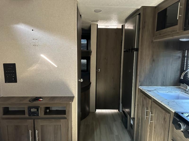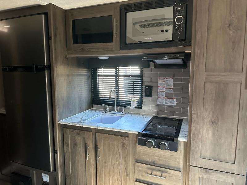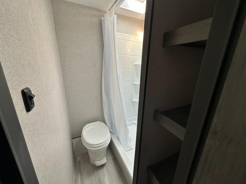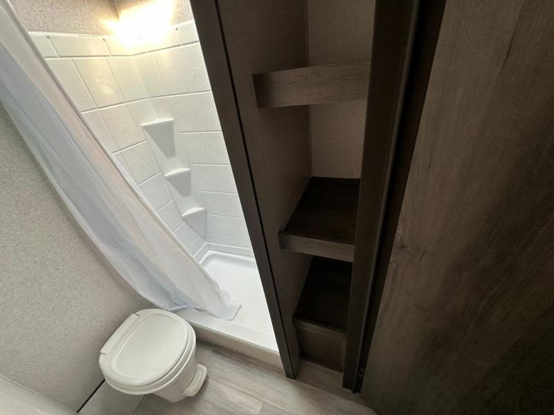 No need to rely on campground facilities — this travel trailer includes a full bathroom with a shower, toilet, and vanity. Designed with comfort and everyday convenience in mind, the bathroom layout makes daily routines effortless and comfortable, no matter where your travels take you.